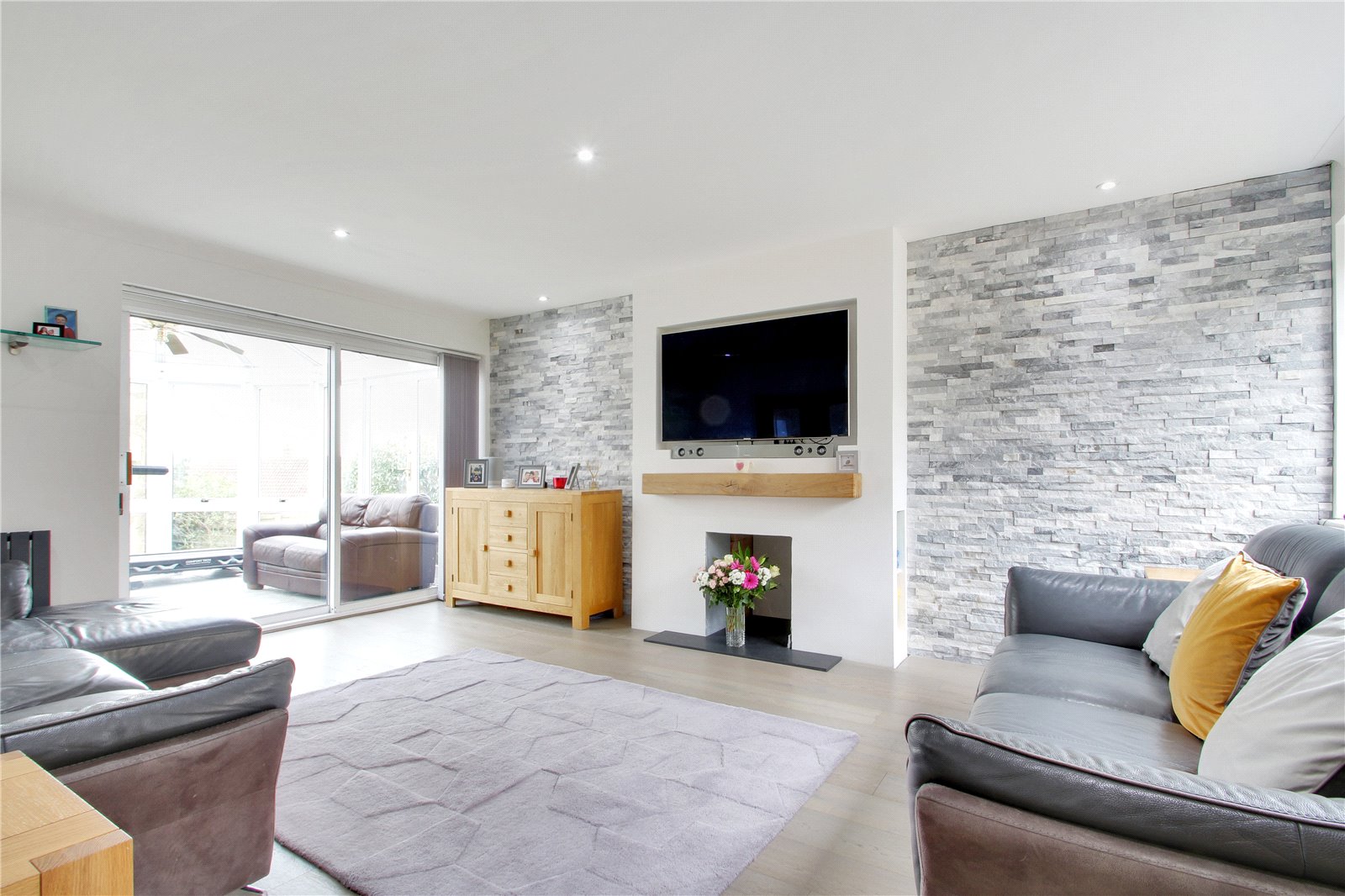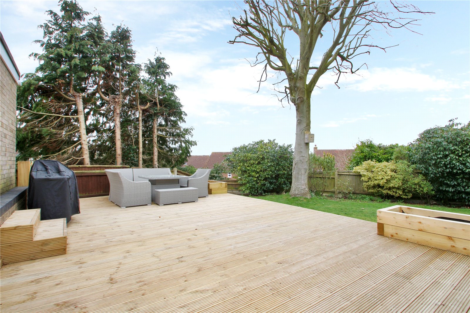 Well positioned in this sought after quiet cul-de-sac. This four bedroom detached house has undergone extensive modernisation by the current owners creating an amazing family home. The spacious entrance has bespoke oak staircase and practical boot room. The double aspect lounge is bathed in light and has a feature tiled wall and open fireplace, double doors connect to dining room with kitchen with integrated appliances. To the first floor are four good sized bedrooms with master bedroom en-suite. The driveway provides ample parking and double garage. The south facing secluded rear gardens are laid to lawn and wrap around the house with wide decked patio with feature lighting.