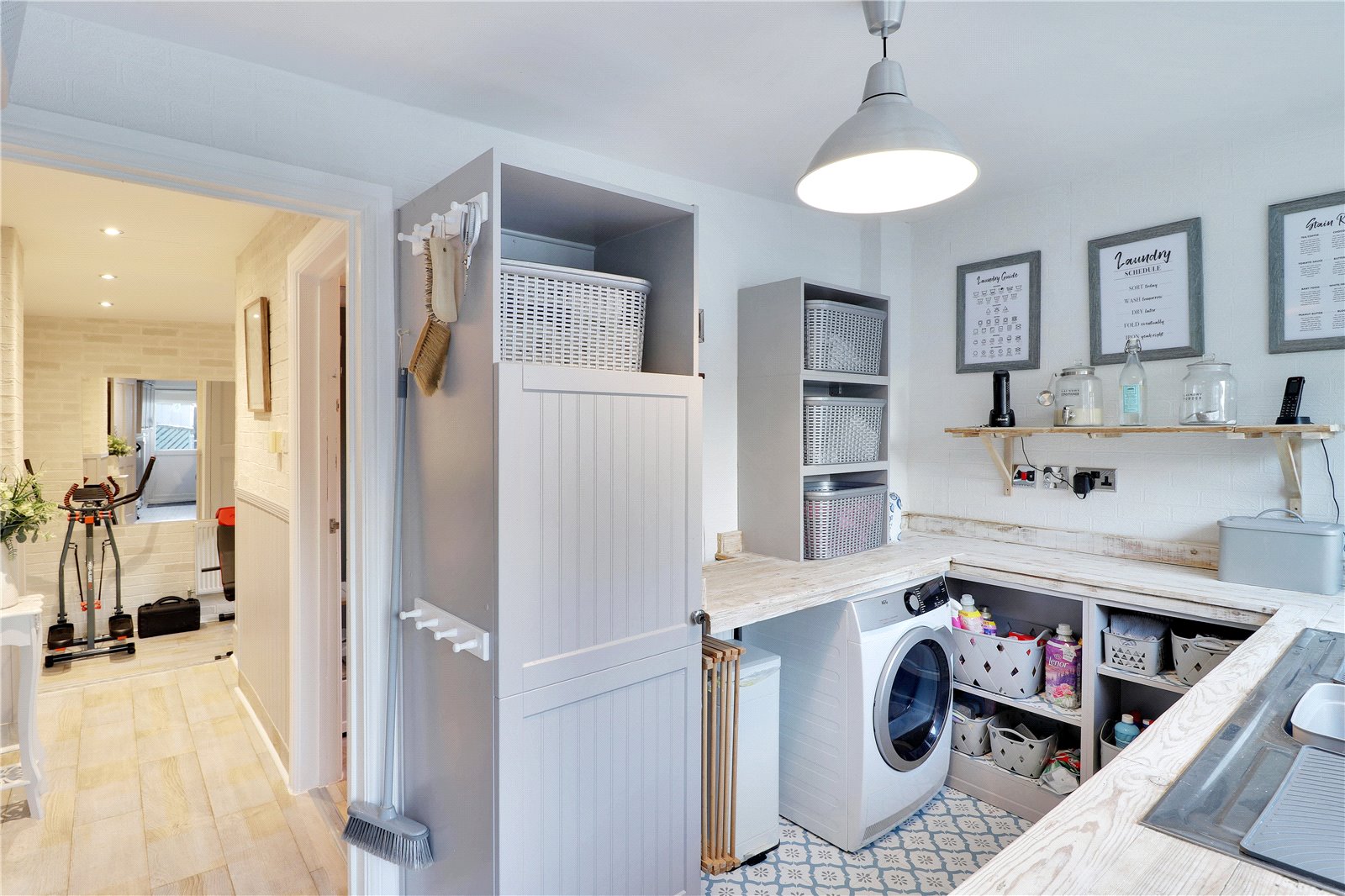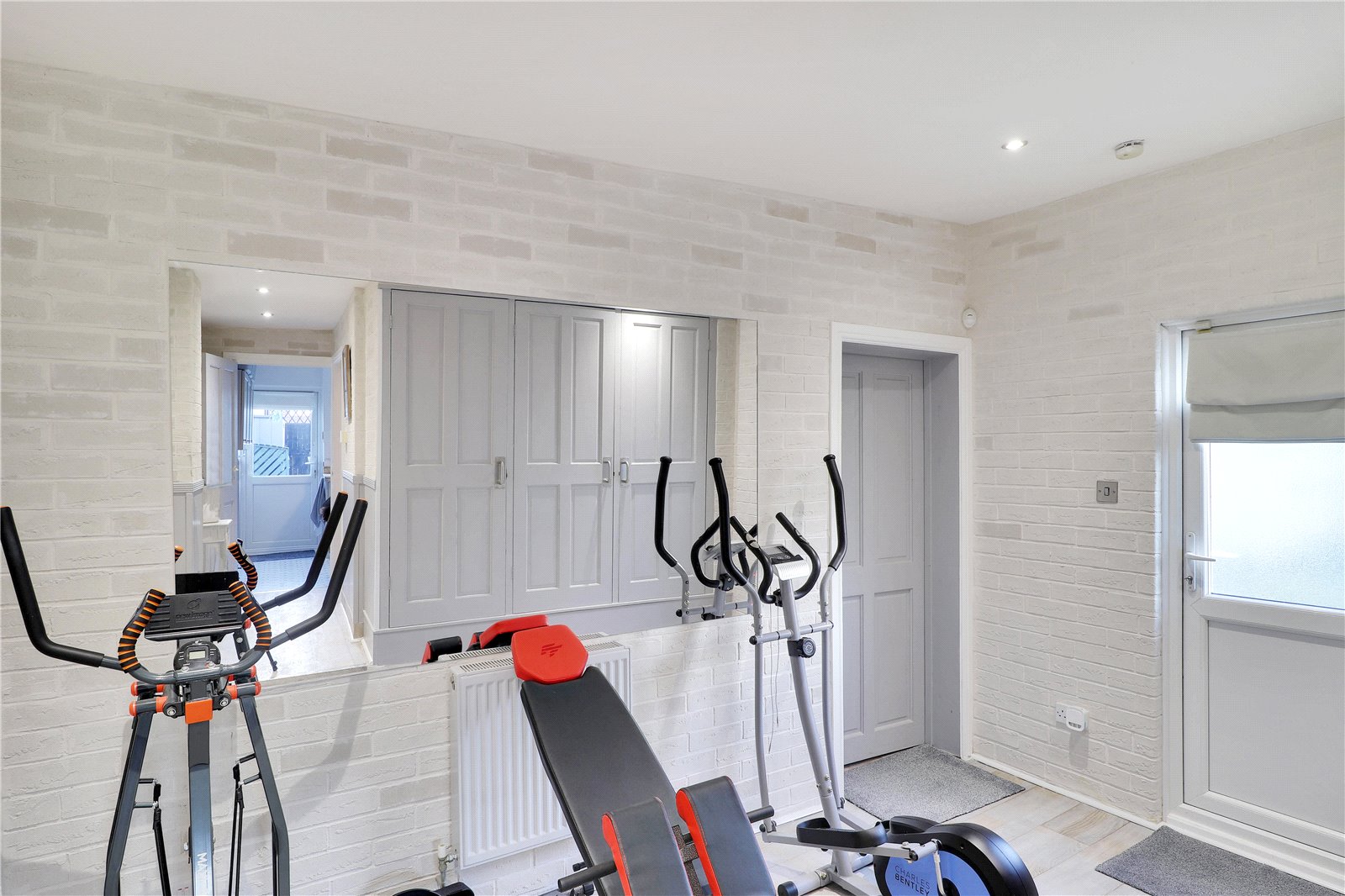 Gym Area 11'9" x 8'4" (3.58m x 2.54m). Double glazed door to side. Wood effect flooring. Plain ceiling. Down lighters. Radiator. Storage cupboards.