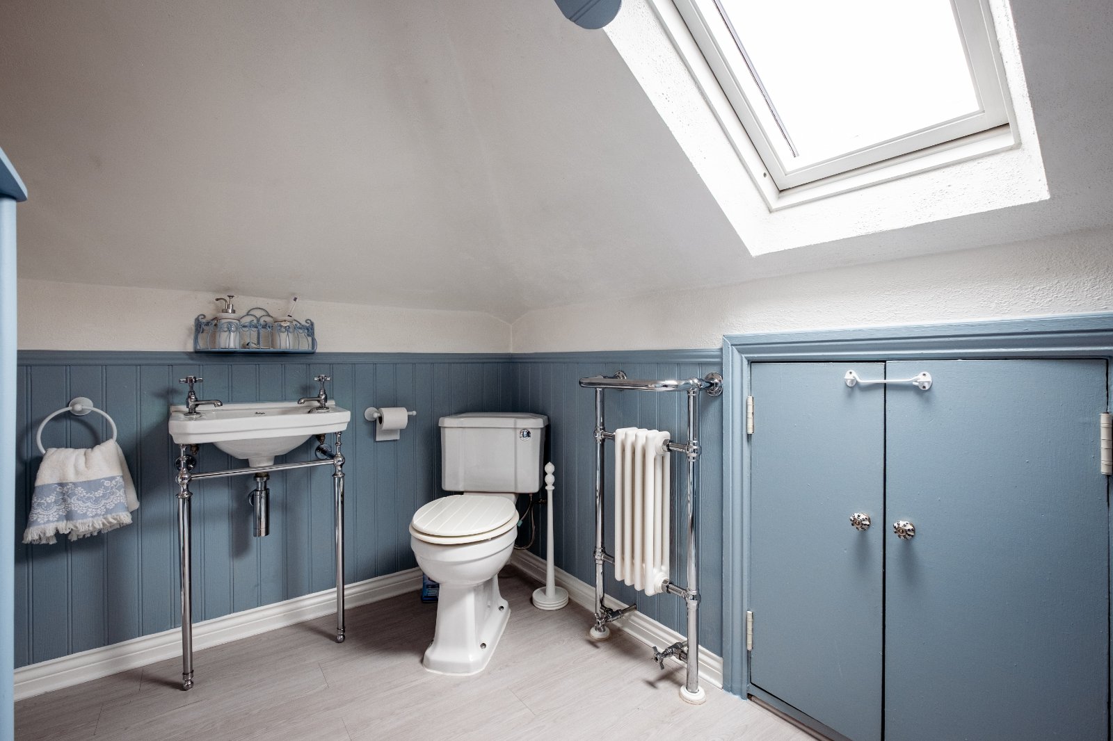 Loft Room 10'5" x 6'1" (3.18m x 1.85m). Double glazed skylight window to side. Vinyl flooring. Textured ceiling. Radiator with towel rail. Panelled bath with mixer taps with shower attachment. Low level W.C. Wash hand basin.