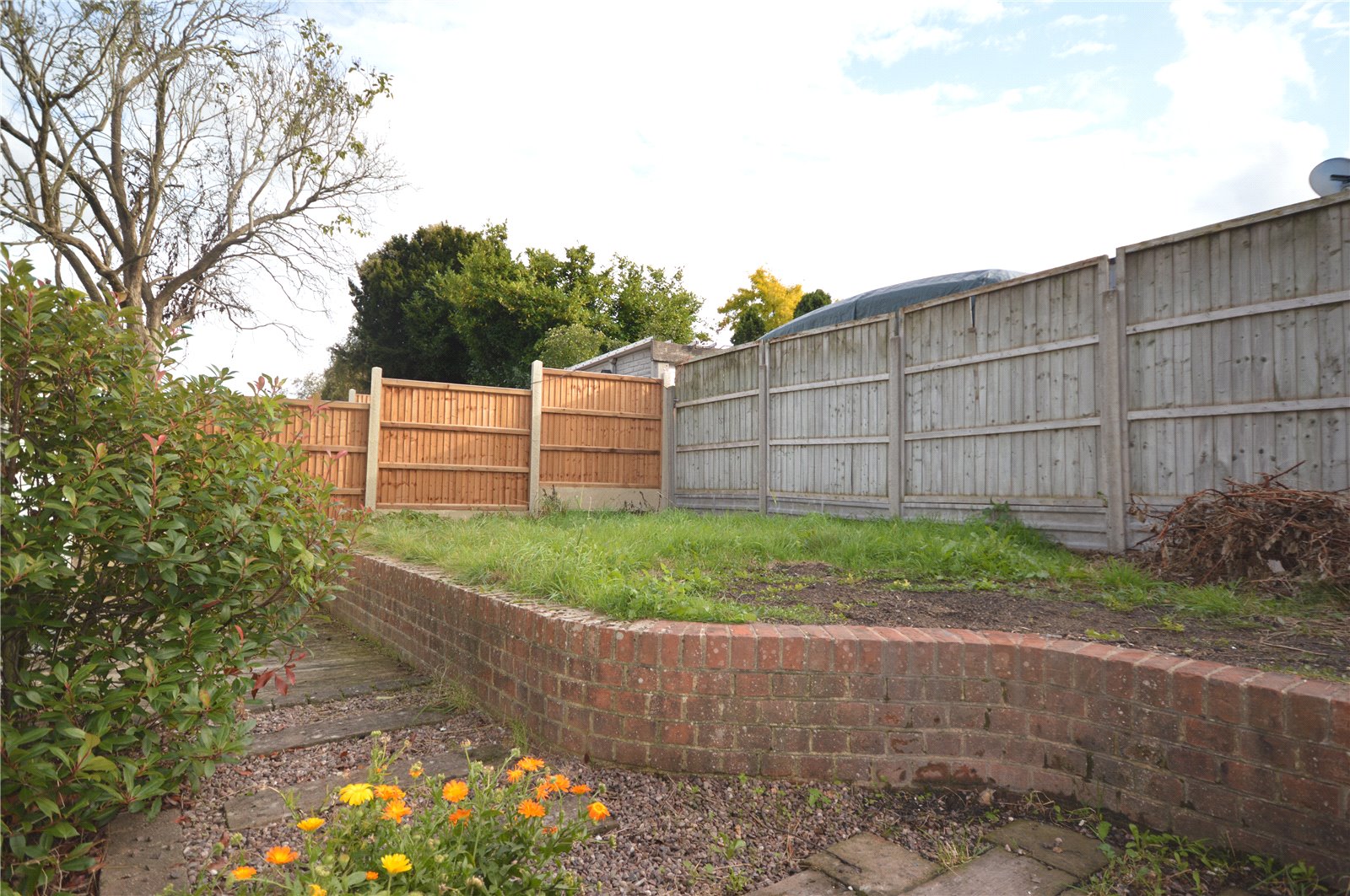 Garden 40' x 18' (12.19m x 5.49m) Decked patio area leading to gardens laid to lawn.