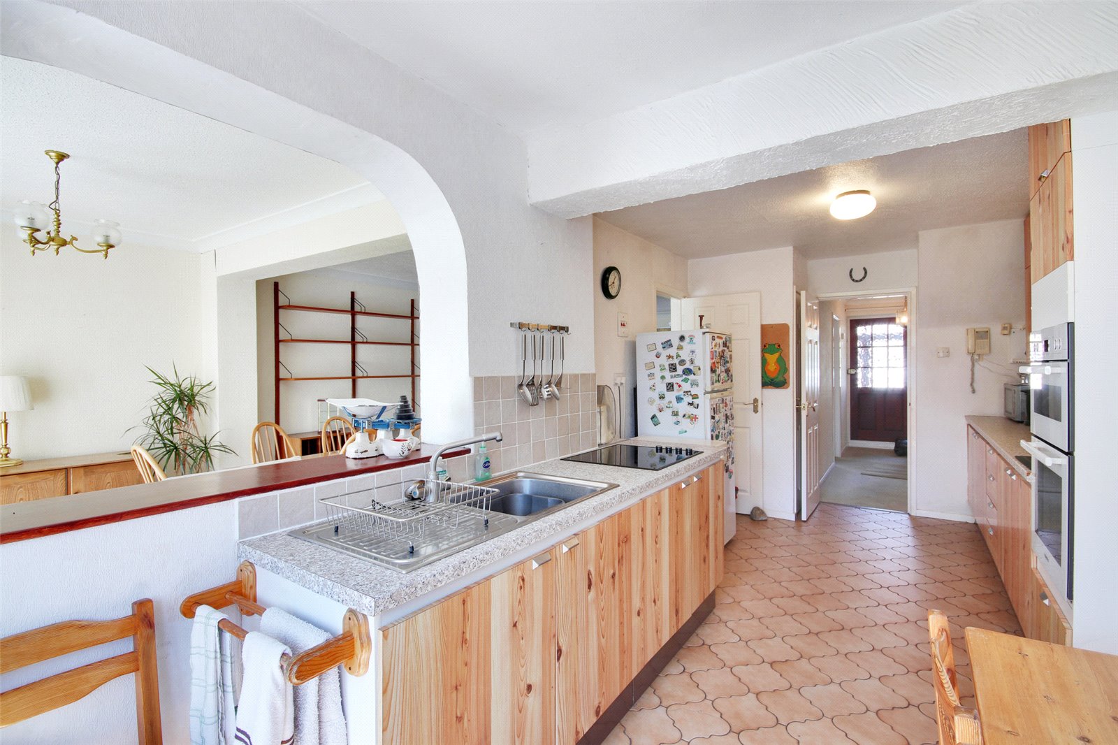 Kitchen/Breakfast Room 19'8" x 9' (6m x 2.74m). Double glazed Georgian style door to rear. Double glazed window to rear. Tiled flooring. Textured ceiling. Radiator. Arch to dining room. Fitted wall and base units with work tops over. Stainless steel sink and drainer unit with mixer taps. Bosch electric hob. Blomberg oven and grill. Spaces for washing machine and fridge/freezer. Larder.