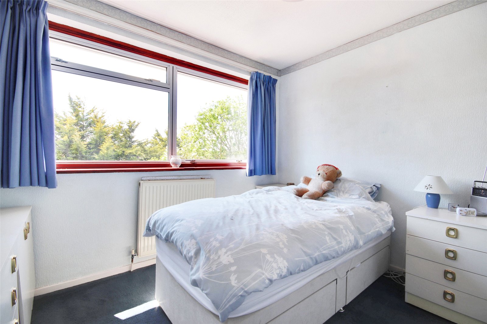 Bedroom Three 8'11" x 7'6" (2.72m x 2.29m). Double glazed window to front. Carpet. Textured ceiling. Radiator.