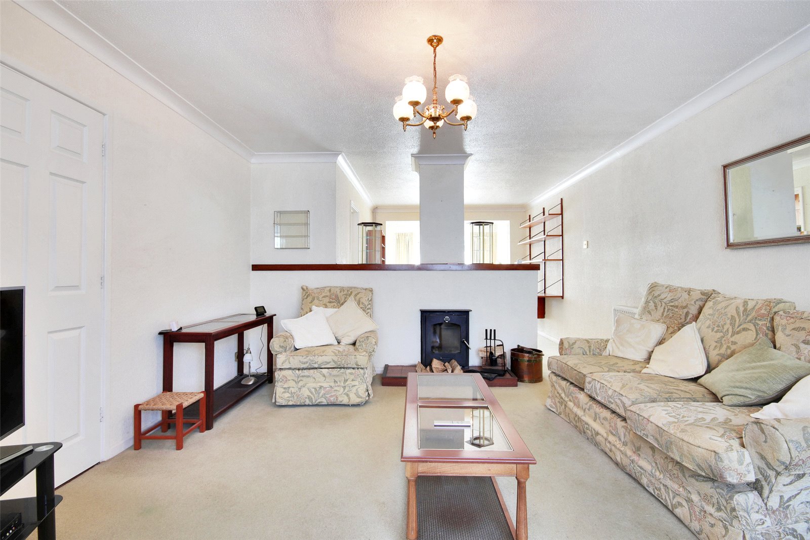 Sitting Room 16'9" x 13' (5.1m x 3.96m). Double glazed window to front. Carpet. Textured and coved ceiling. Radiator. Log burner. Open plan to dining room.