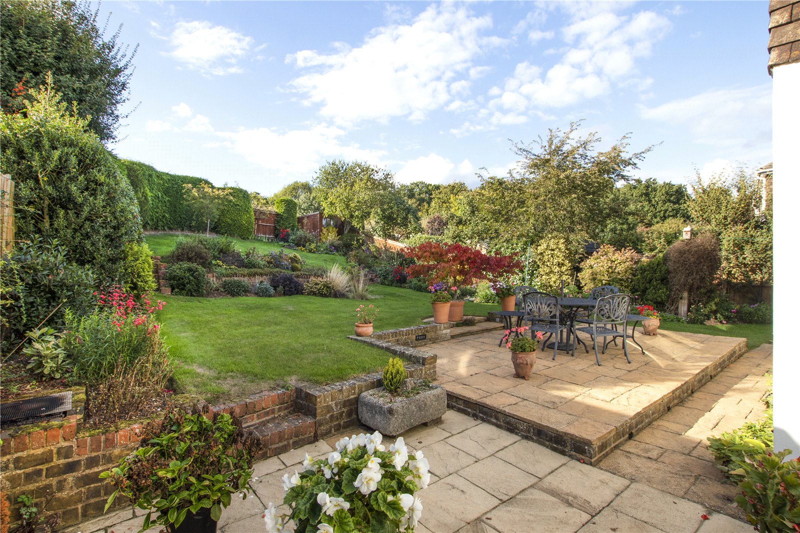 First time on the market since originally built by R J Billings in 1977. This stunning five bedroom detached house is set in this favoured location backing on to fields. Located in a quiet cul-de-sac, within walking distance of the bustling village of Longfield and mainline station. Meticulously kept the property has a well appointed kitchen breakfast room with integrated appliances, which leads to practical utility boot room. The two large reception rooms are bathed in light via double aspect windows and French doors opening onto a large patio and well stocked West facing garden backing on to farmland. The first floor provides master bedroom with bespoke wardrobes and ensuite shower room w.c. recently fitted by Swans to include the family bathroom and cloakroom w.c. There are 4 further large bedrooms one which makes a great study. To the front is driveway for several cars and provides access to double garage.