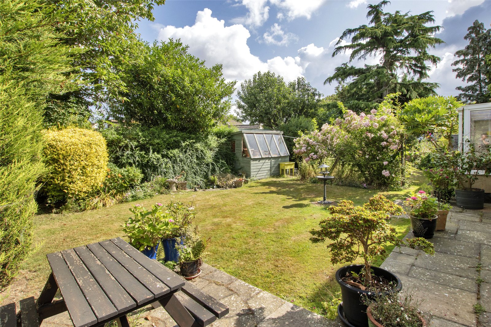 Rear garden Secluded aspect. Paved patio. Laid to lawn with fruit/flower borders. Wall boundaries. Potting shed. Side access. Small pond.