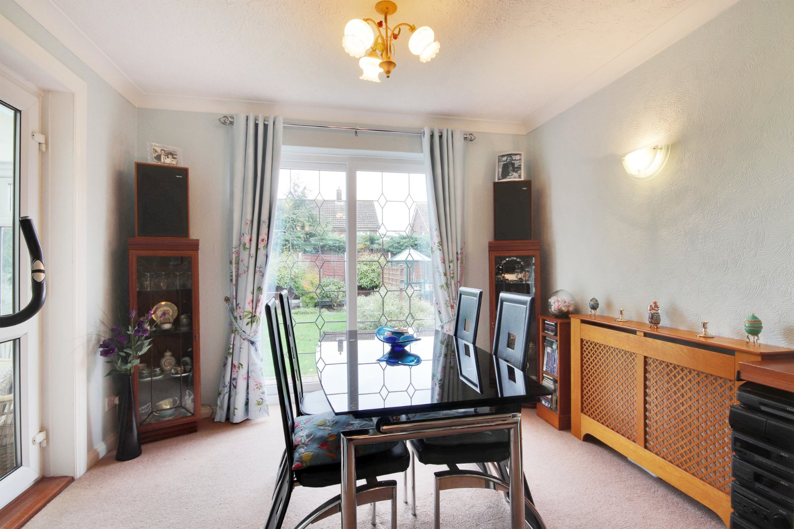 Dining Room 10'5" x 9' (3.18m x 2.74m). Double glazed leaded light effect patio doors to rear. Carpet. Textured and coved ceiling. Open plan to sitting room.