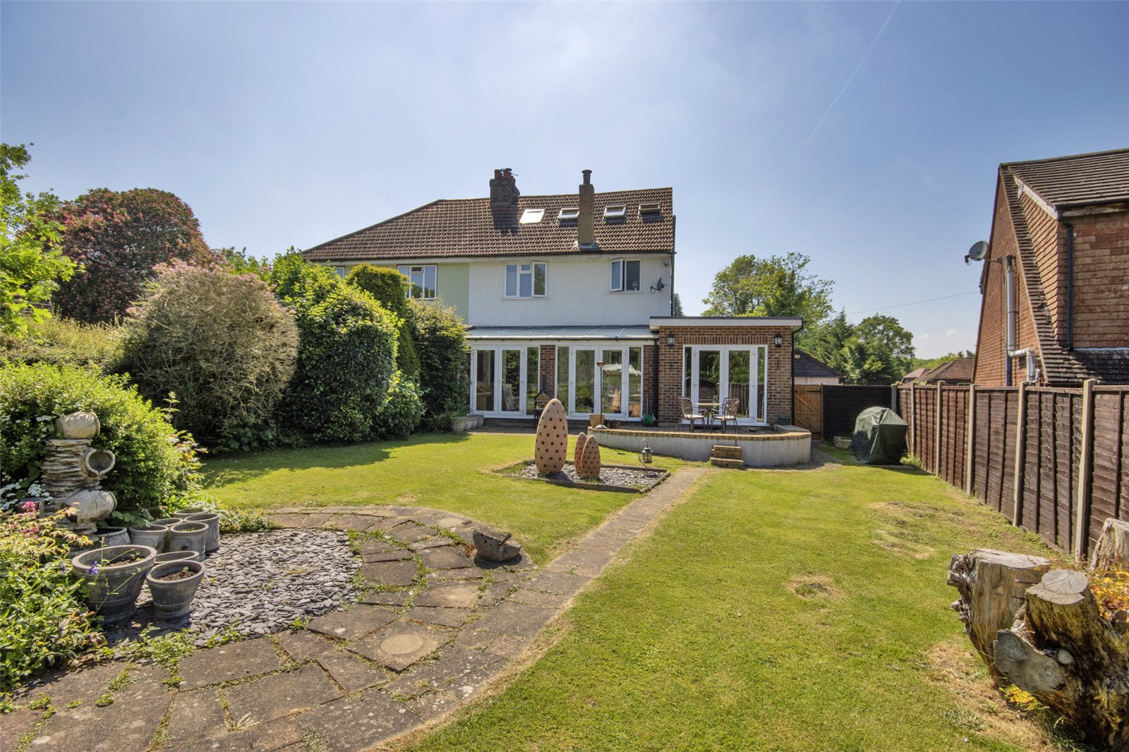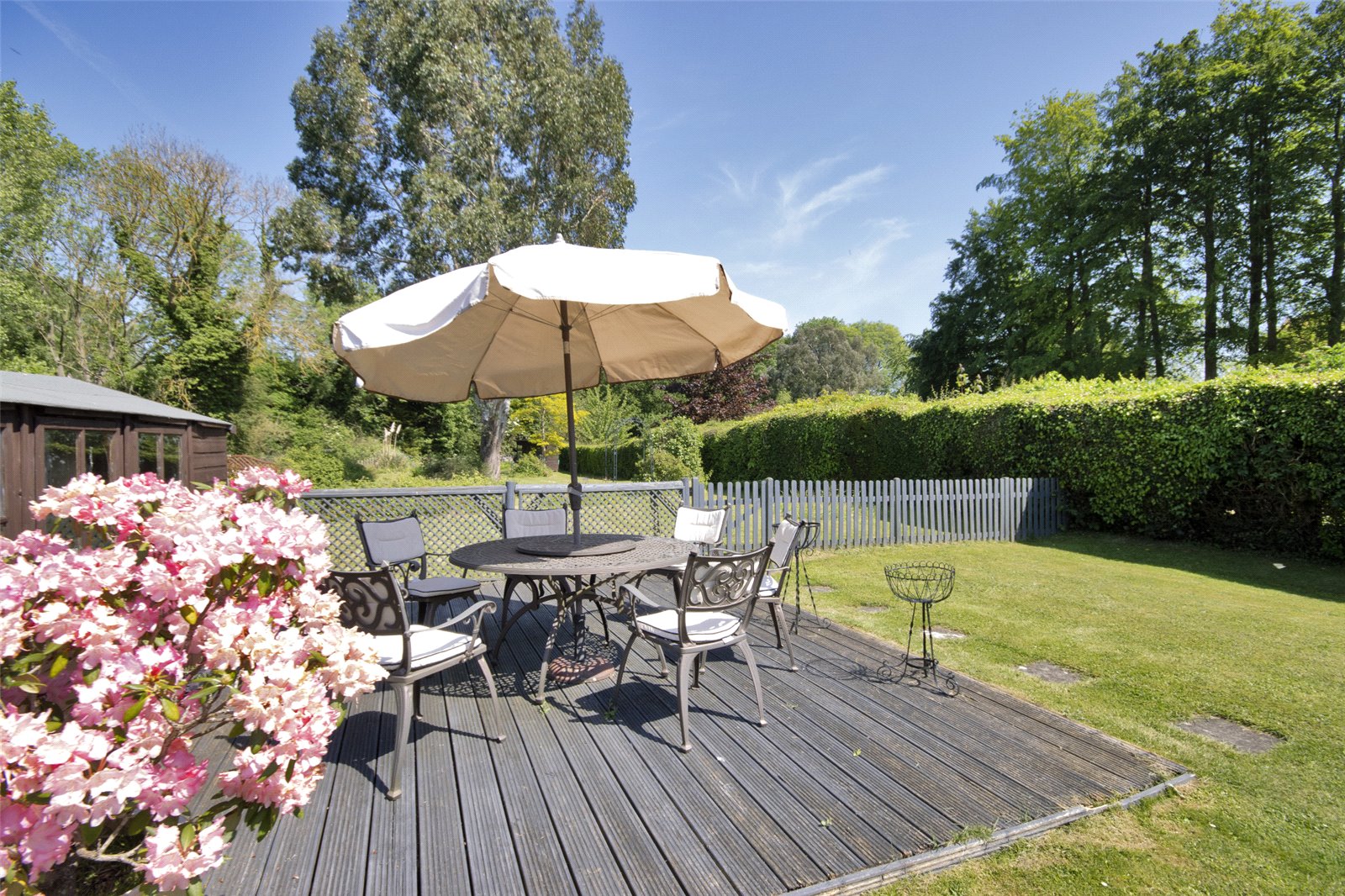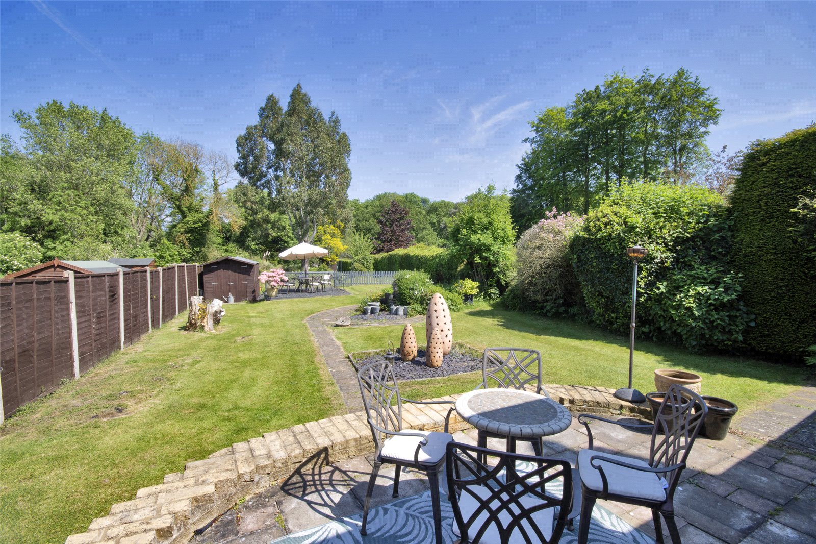A particular feature of Bedale is the beautiful rear garden which extends to approximately 310 ft mainly to lawn with a variety of flower and shrub beds, mature trees, garden sheds, fenced and hedge boundaries. In addition, there is detached garage and off road parking for several vehicles and a side secluded courtyard area ideal for alfresco dining.