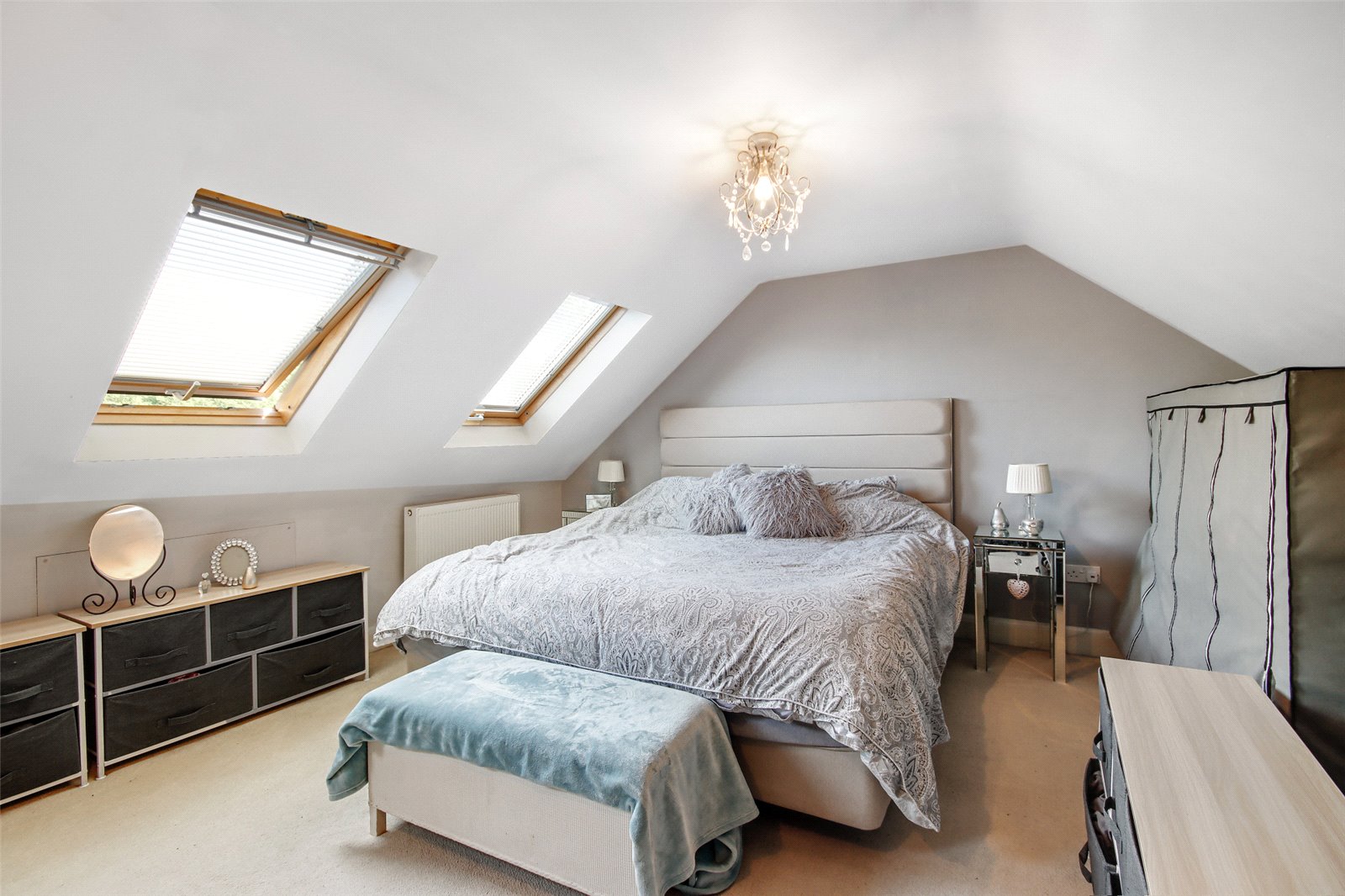 Main Bedroom 16'4" x 15'3" (4.98m x 4.65m). Velux windows to rear, eaves storage housing water softener.