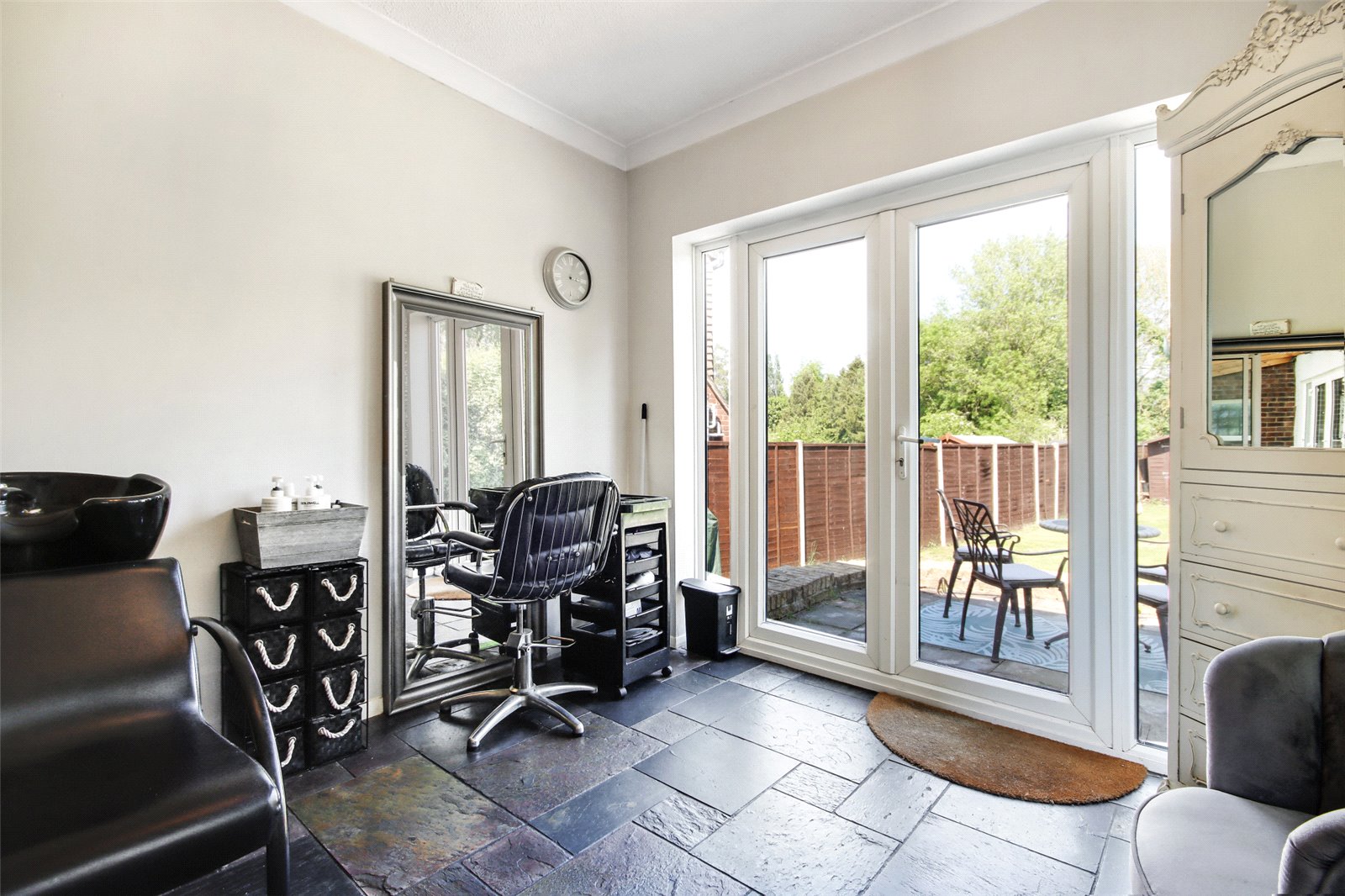 Study/Work Area 9'11" x 9'3" (3.02m x 2.82m). Sliding patio doors opening to garden, additional sliding doors opening to: