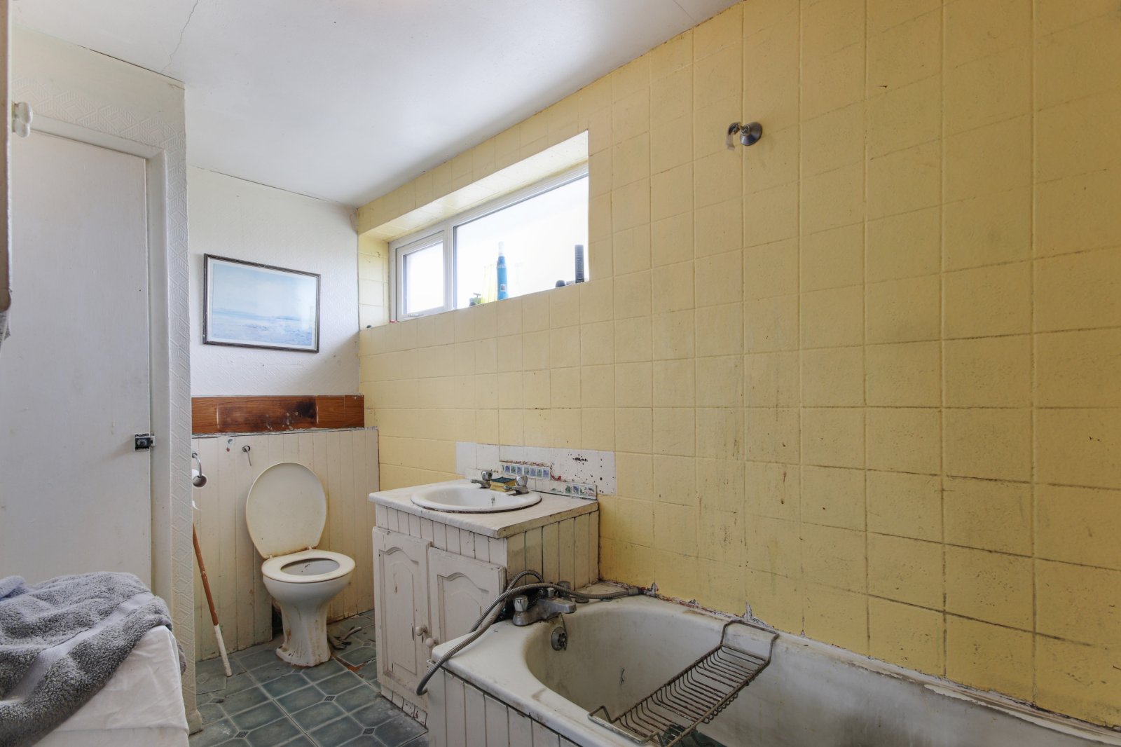 Bathroom 11'3" x 8'5" (3.43m x 2.57m). Window to front. Vinyl flooring. Plain ceiling. Radiator. Panelled bath. Wash hand basin. Low level W.C. Local tiling to walls.