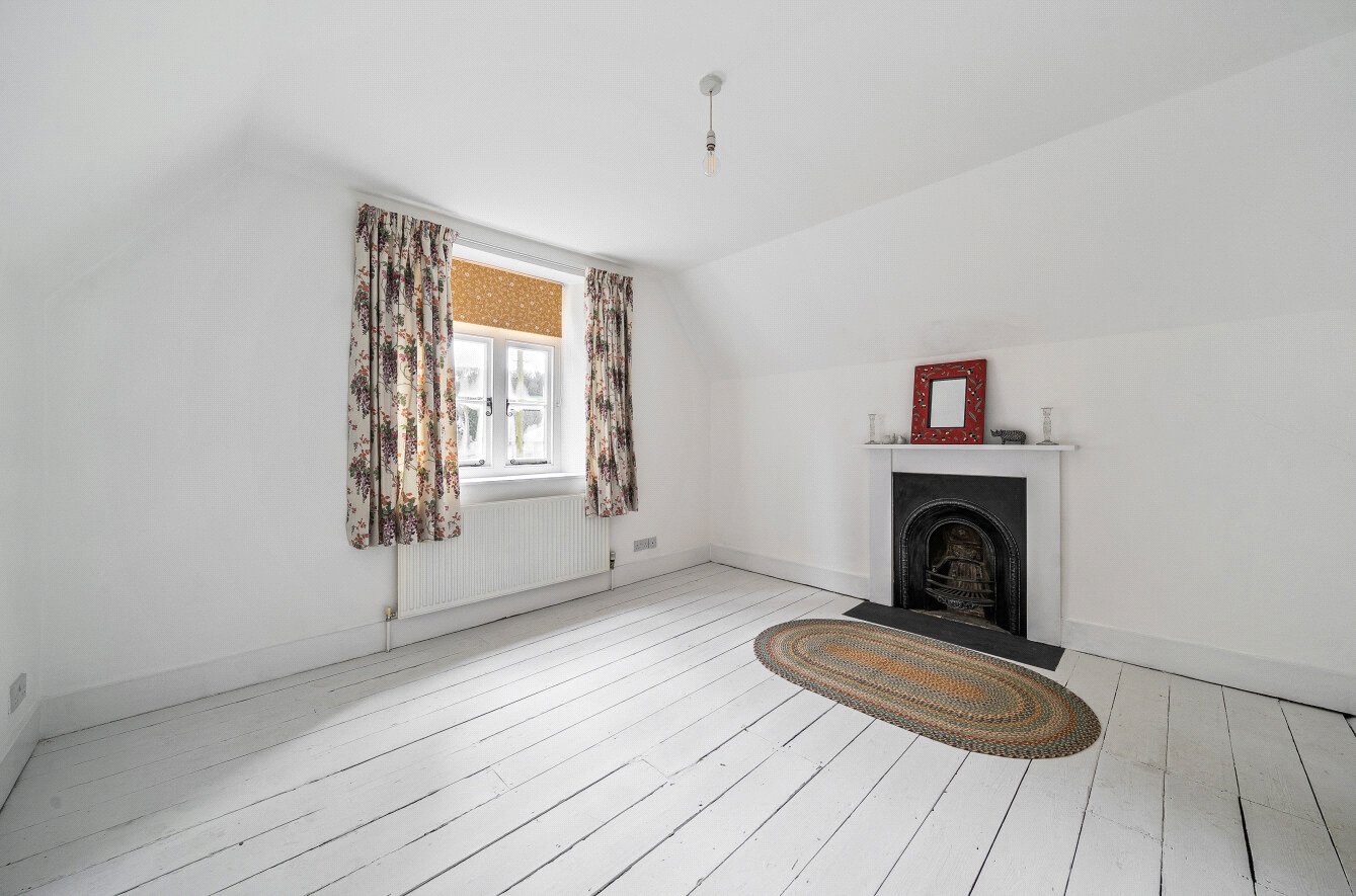 Ascending to the first floor, there are 2 double bedrooms both with feature fireplaces. The principal bedroom enjoys views over the church grounds and in addition on the landing, there are useful storage cupboards. Completing the first floor is a spacious bathroom with ample space to add a shower unit if required.