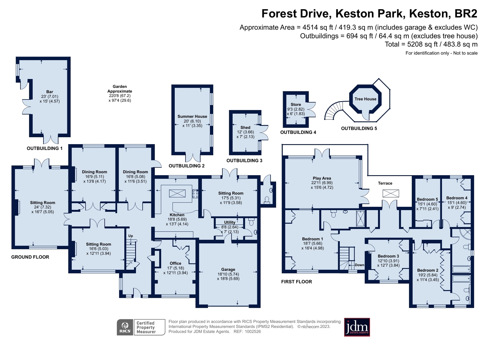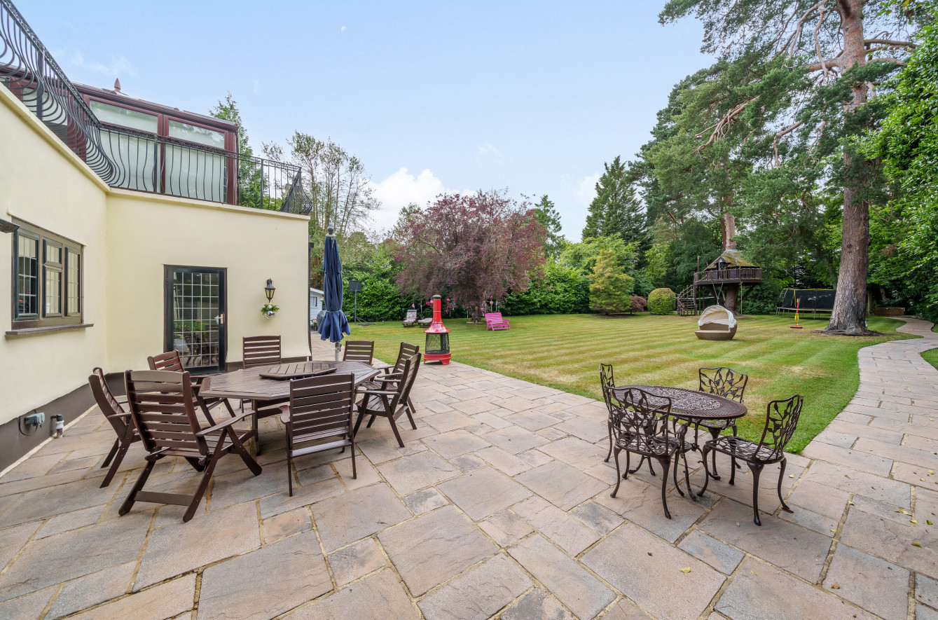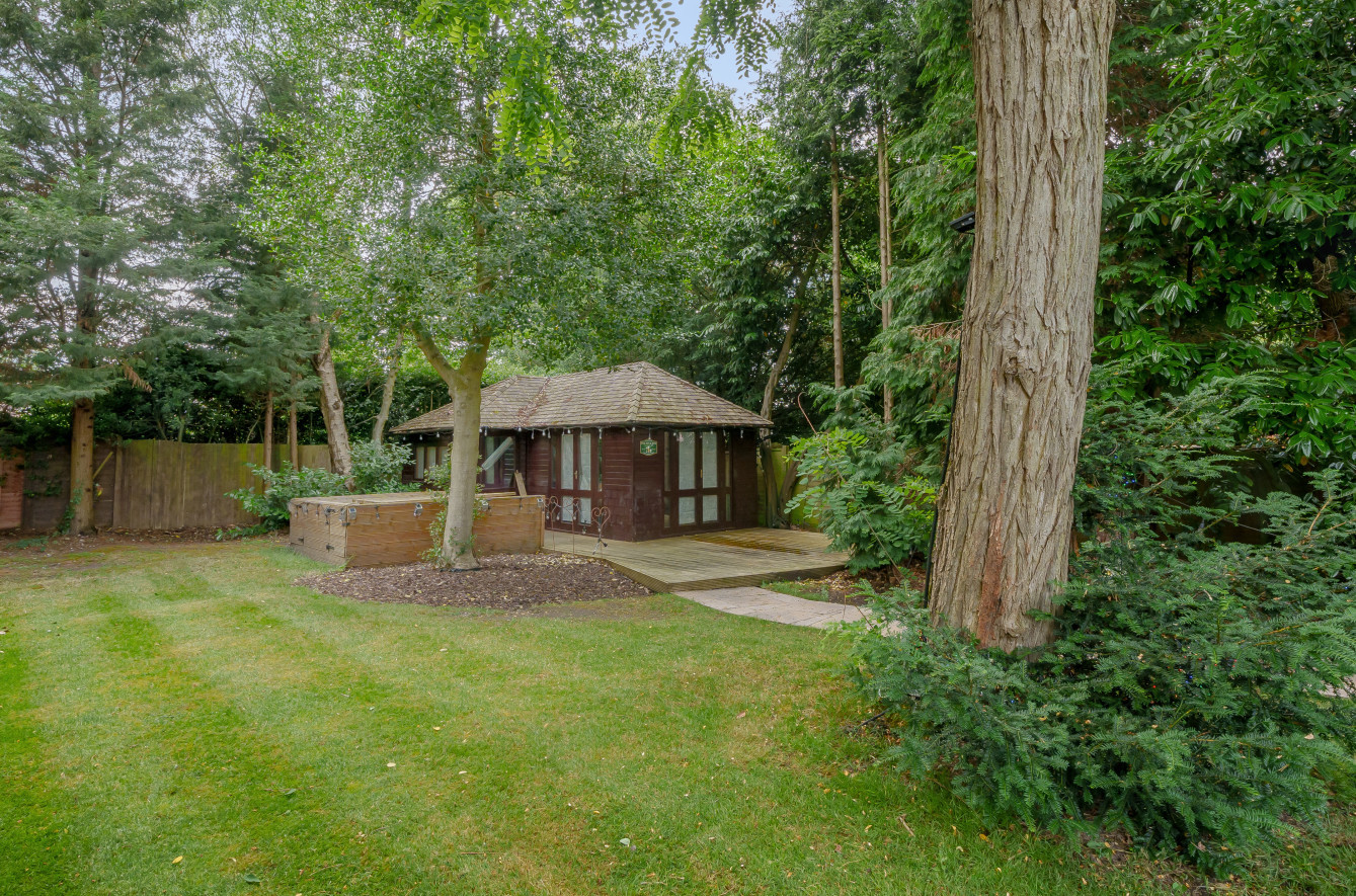 The rear garden measures approximately 220' x 97' and enjoys a westerly aspect. There is a paved seating area to the immediate rear of the property with a path leading to the far end with a summerhouse and further decked area. The garden is mainly laid to lawn with a backdrop of mature trees and shrubs giving it a secluded and tranquil feel.