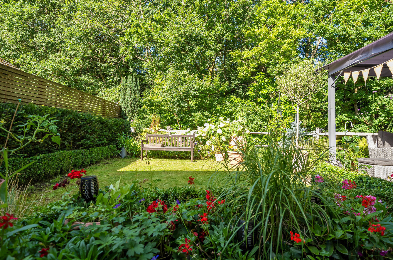 The beautiful cottage style garden has a westerly aspect which provides a calm space to sit and enjoy the surroundings.