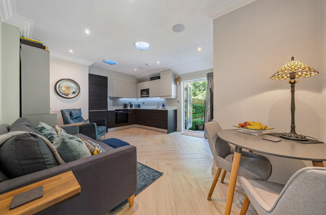 This former school house, built circa 1855, was converted into 12 luxury apartments in 2019. This stunning ground floor apartment is situated at the rear of the building, away from the road, and has the benefit of its own secluded garden with a backdrop of mature trees.