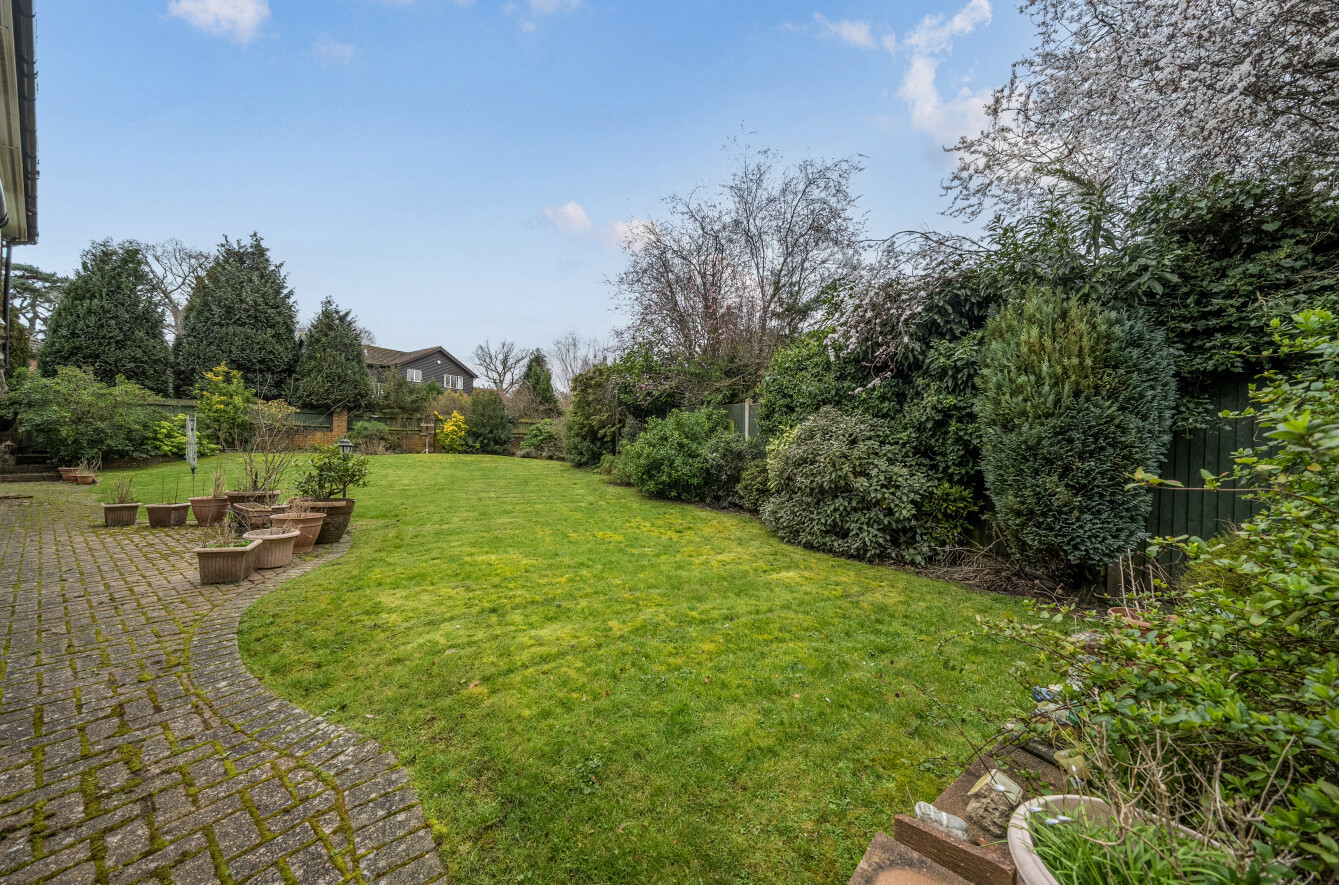 Sitting on a corner plot, the rear garden has a westerly aspect. Being bordered by mature plants and shrubs the garden has a truly secluded feel.