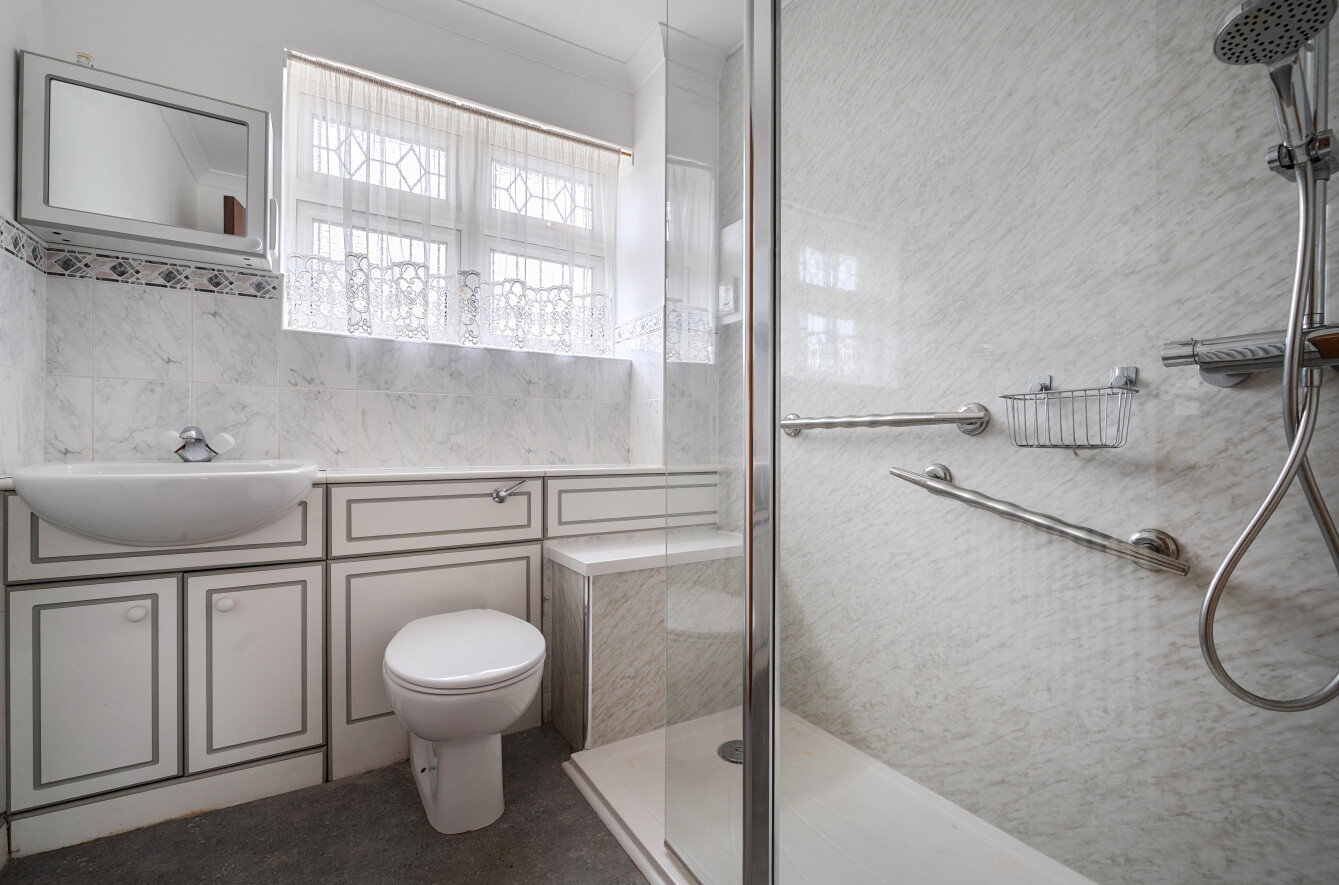The front door opens into an enclosed porch and in-turn a welcoming entrance hall with three piece downstairs shower room and useful storage cupboards.