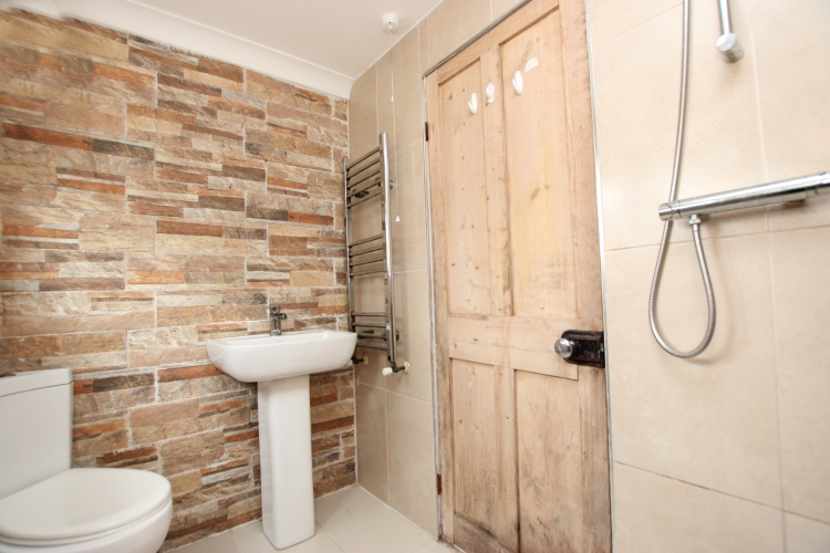 Double glazed obscure window to rear aspect, fully tiled surrounds, mains shower, vanity wash basin, low-level corner W/C,