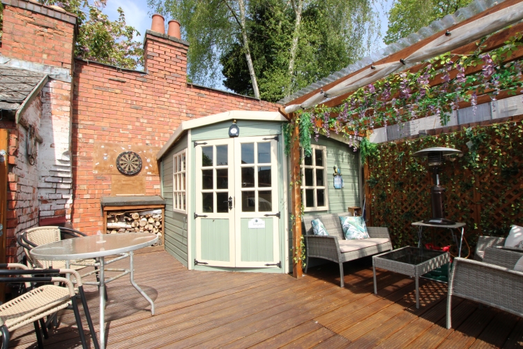 Brick Surrounded Frontage, The Enclosed 50+ FT Landscaped Garden benefits from lawned and raised decking area alongside the aforementioned summerhouse.