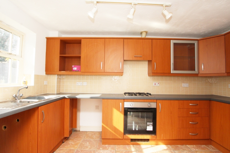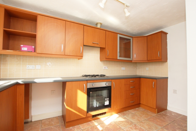 Double glazed window to rear aspect, a range of wall and base units, worksurface incorporating 1 ½ bowl sink with drainer, space for appliances, integrated oven, hob and extractor radiator, tiled surrounds, boiler