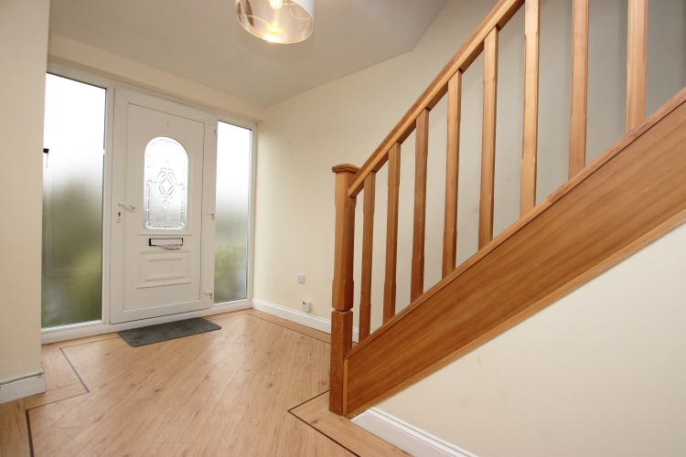 Rear garden with lawned space, fenced surrounds, stepped up decking area to the rear, Garage (4.80m x 2.45m) as part of a ‘garage en bloc’ with off road parking in-front of the garage (accessed from Trent Road). The front of the property features a stepped-up pathway with a plants and shrubs providing ample privacy to the front aspect