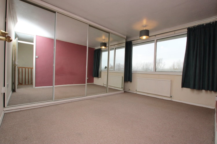 Double glazed window to front aspect, wall length integrated wardrobes with sliding doors, radiator