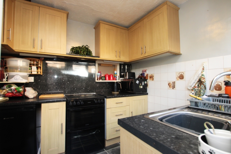 A range of wall and base units, splashbacks and surrounds, work surface incorporating a sink with drainer, space for a range of appliances, double glazed window to side aspect