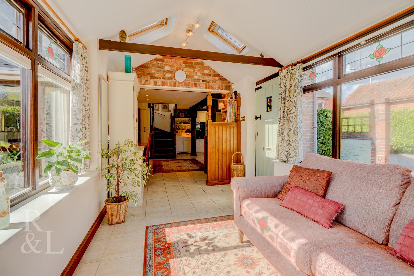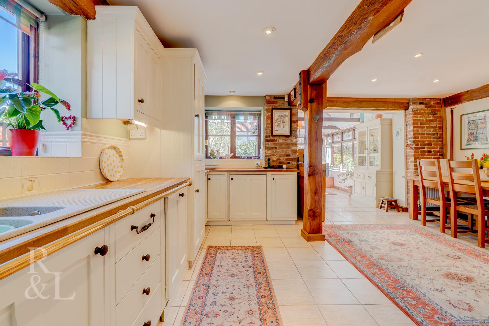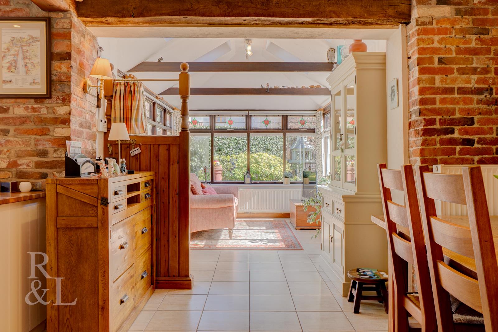 Retaining a wealth of period features including exposed beams and exposed brickwork the accommodation offers a spacious and versatile layout with the front door giving access to a wonderfully bright triple aspect sun room which is open plan to the kitchen/diner. The kitchen area comprises a bespoke hand made range of base and eye level mounted cupboards with oak worktops with integrated sink/drainer, eye-level oven and grill and fridge/freezer. Stairs lead up from the kitchen area to the first floor. Off the kitchen area, internal, glazed double doors open to a reception room comprising an electric feature fireplace with French Doors opening to the rear garden.