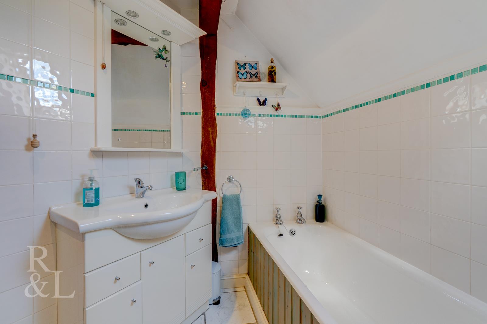To the first floor there are two double bedrooms, the master bedroom featuring full width low level windows as well as a Velux window to one side and full width fitted wardrobes to the other. The second bedroom benefits from a dual aspect with a window to the side elevation and a Velux window to the rear elevation with a wash hand basin. The family bathroom boasts a four piece suite comprising a bath, low level w/c, wash hand basin, a separate shower and a heated towel rail.