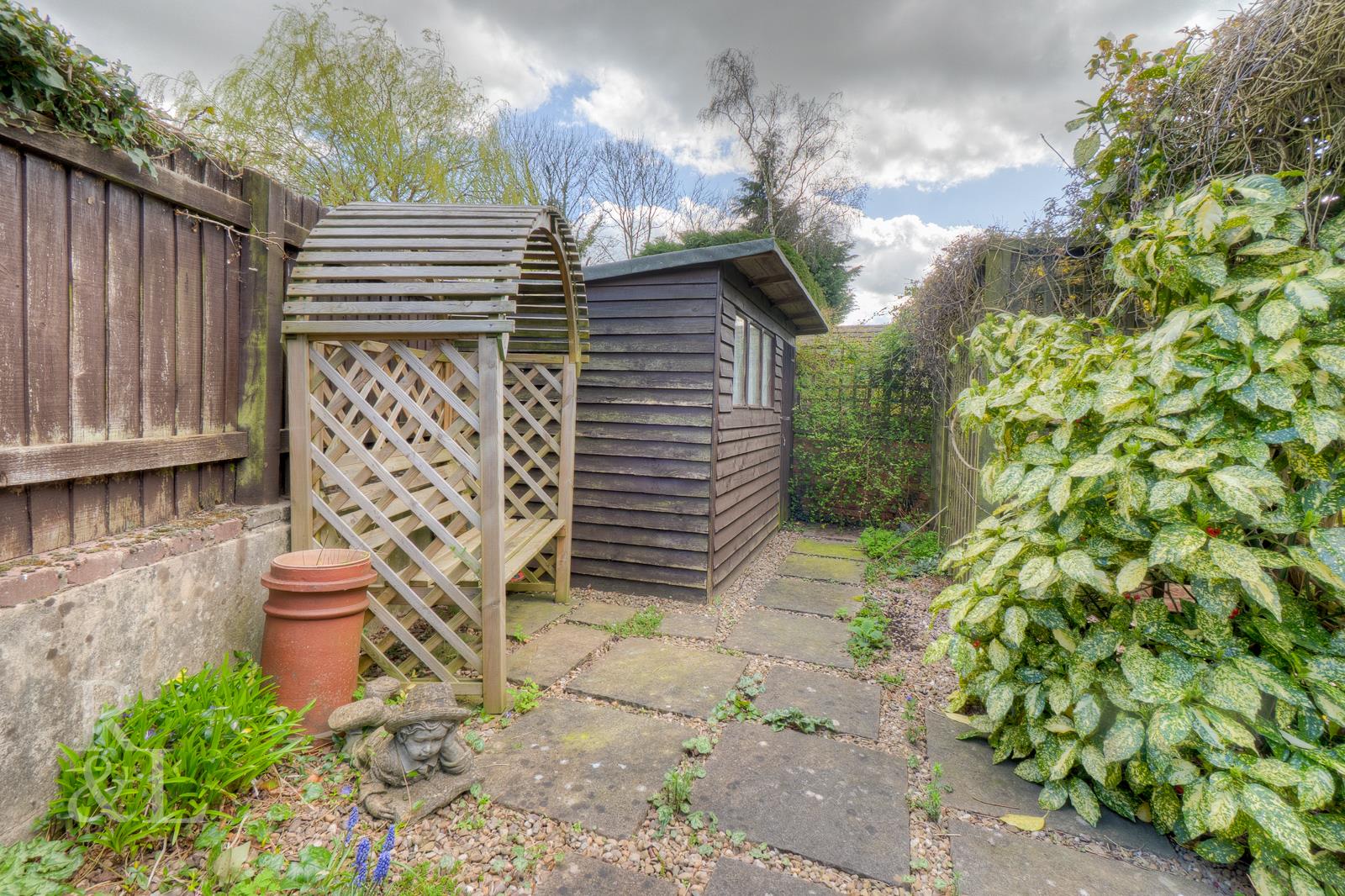 To the rear of the property is a low maintenance garden featuring a patio area with a selection of shrubs, plants and bushes plus a shed. Off-street parking for two-three vehicles just across from the property leads to a detached, double garage which could potentially be converted/developed (subject to relevant permissions).