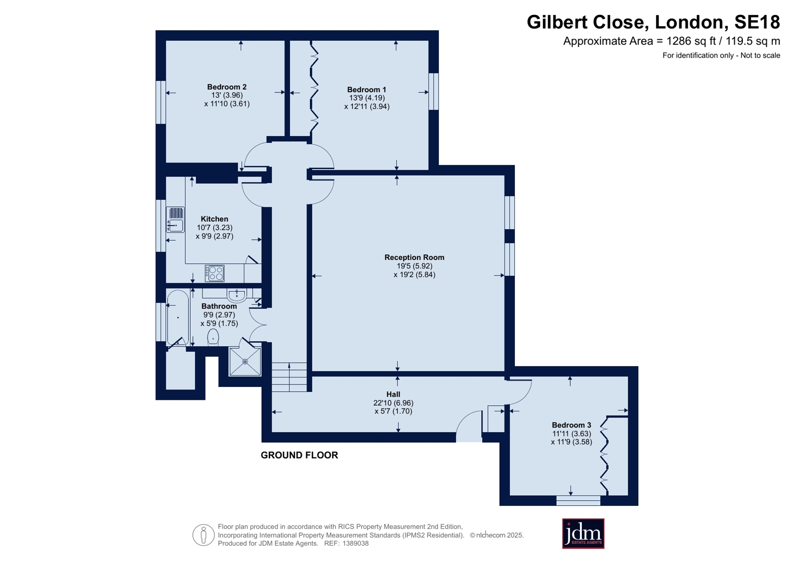 This Ground floor apartment is accessed via entry door into a large hallway that leads to all the rooms within the apartment which measures an impressive 1286 sq ft. The accommodation comprises a substantial size reception room with wooden floor, separate fitted kitchen, fully tiled family bathroom with independent shower and bath and three double bedrooms.