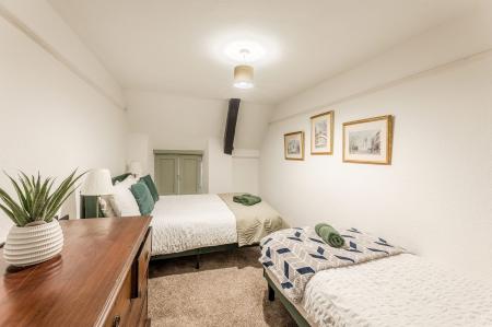 On the ground floor, the entrance hall leads into a welcoming sitting room with elegant parquet flooring and a feature fireplace, creating a cosy and inviting space. To the rear, a generous kitchen/dining room provides the perfect setting for family meals and entertaining, with ample space and views over the garden. A stylish bathroom completes the ground floor layout.