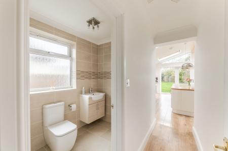 This well-proportioned detached home has been thoughtfully modernised throughout, offering a perfect blend of style and practicality. The heart of the home is undoubtedly the impressive kitchen/dining room, which spans the rear of the property. With its contemporary design, ample work surfaces and space for a large dining table, this is an ideal setting for family meals and entertaining. French doors open directly onto the garden, creating a seamless indoor-outdoor flow. The ground floor also features a welcoming living room with a bay window, a versatile family room and a useful utility area with a cloakroom.