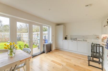 - Large kitchen/dining area with patio doors to the garden