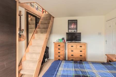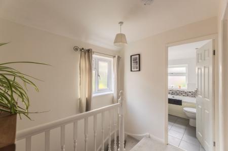 Upstairs, there are three well-proportioned bedrooms, each finished to a high standard with new flooring and neutral décor. The third bedroom provides access to a partly converted loft, offering potential for further use as a study, playroom, or additional storage. The family bathroom is modern and well-appointed, with quality fittings and a clean, stylish finish.