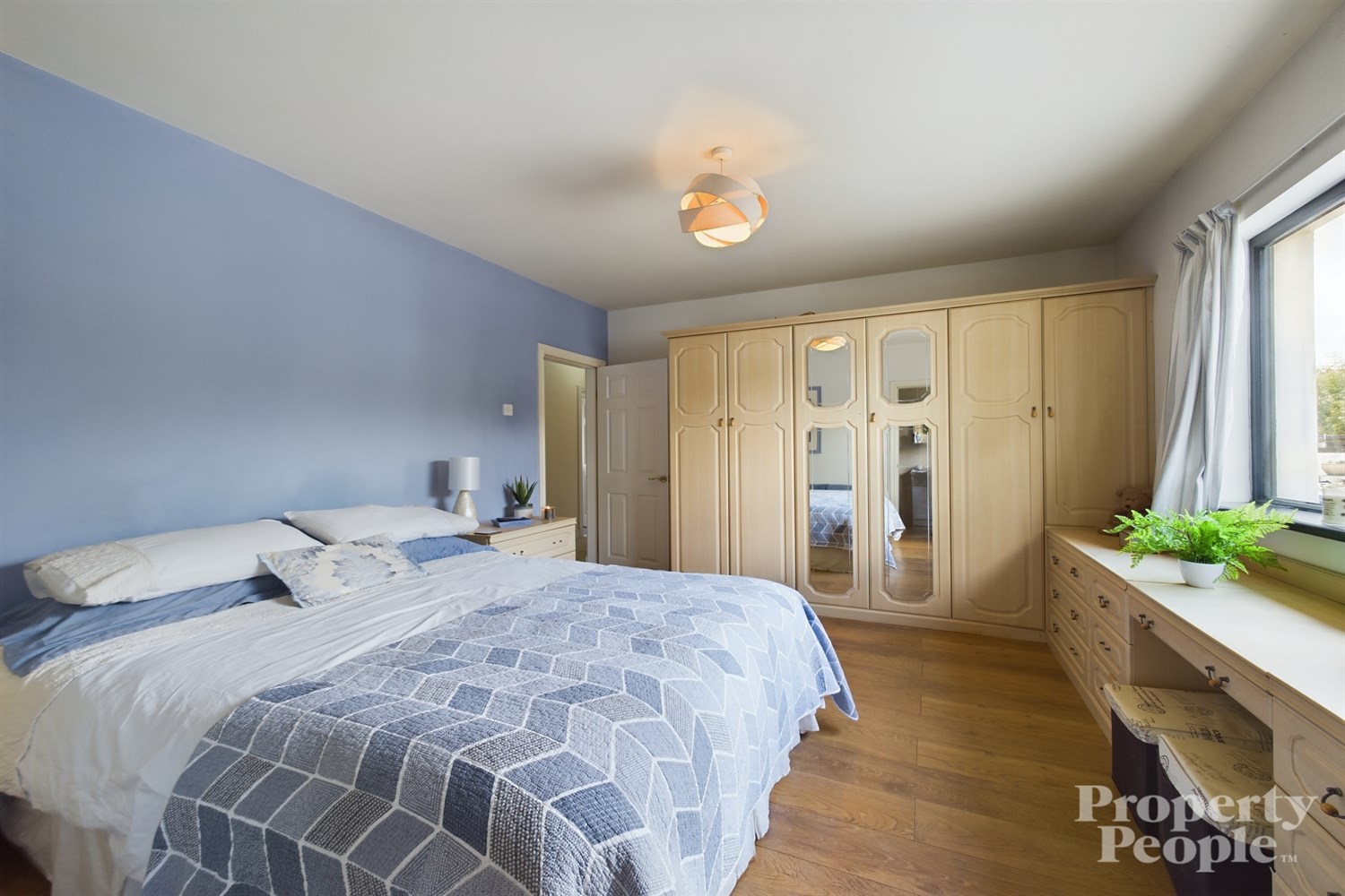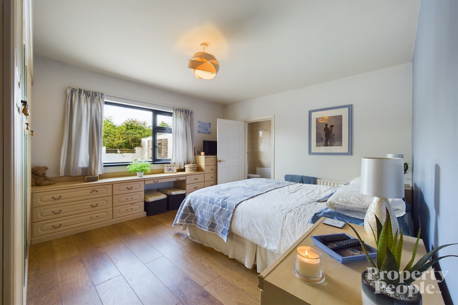 The Master bathroom has a tiled floor and ceiling, a separate shower enclosure, a bath, a wash hand basin, and WC. Two of the five generously sized bedrooms are ensuite and have built-in wardrobes and drawers to maximise space and eliminate clutter from the rooms.