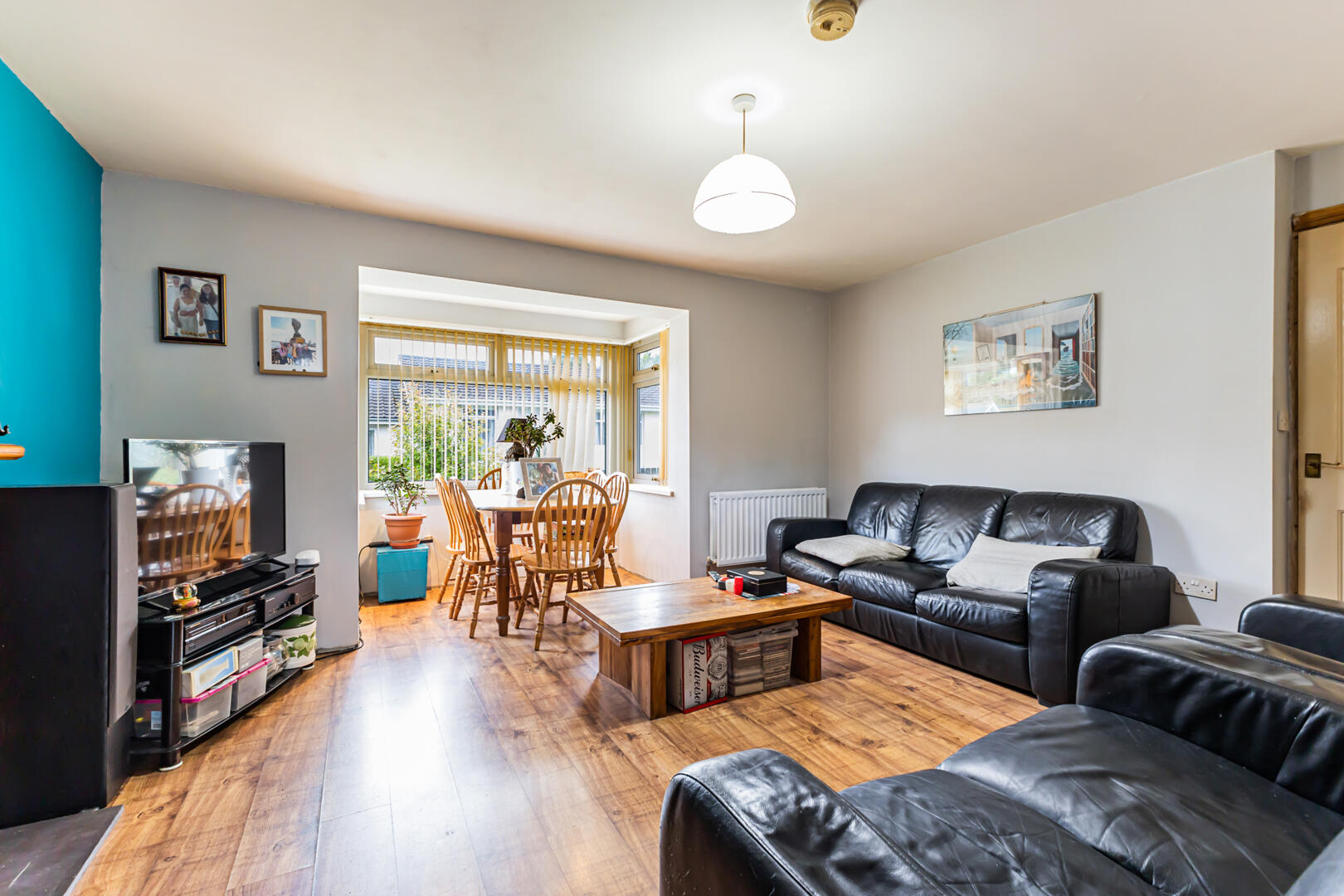 Family Lounge / Dining - 3.66m x 4.47m (12' x 14'8") - Bay window with outlook to front, laminate wood flooring, feature electric fire with wooden surround, double door access to Kitchen / dining