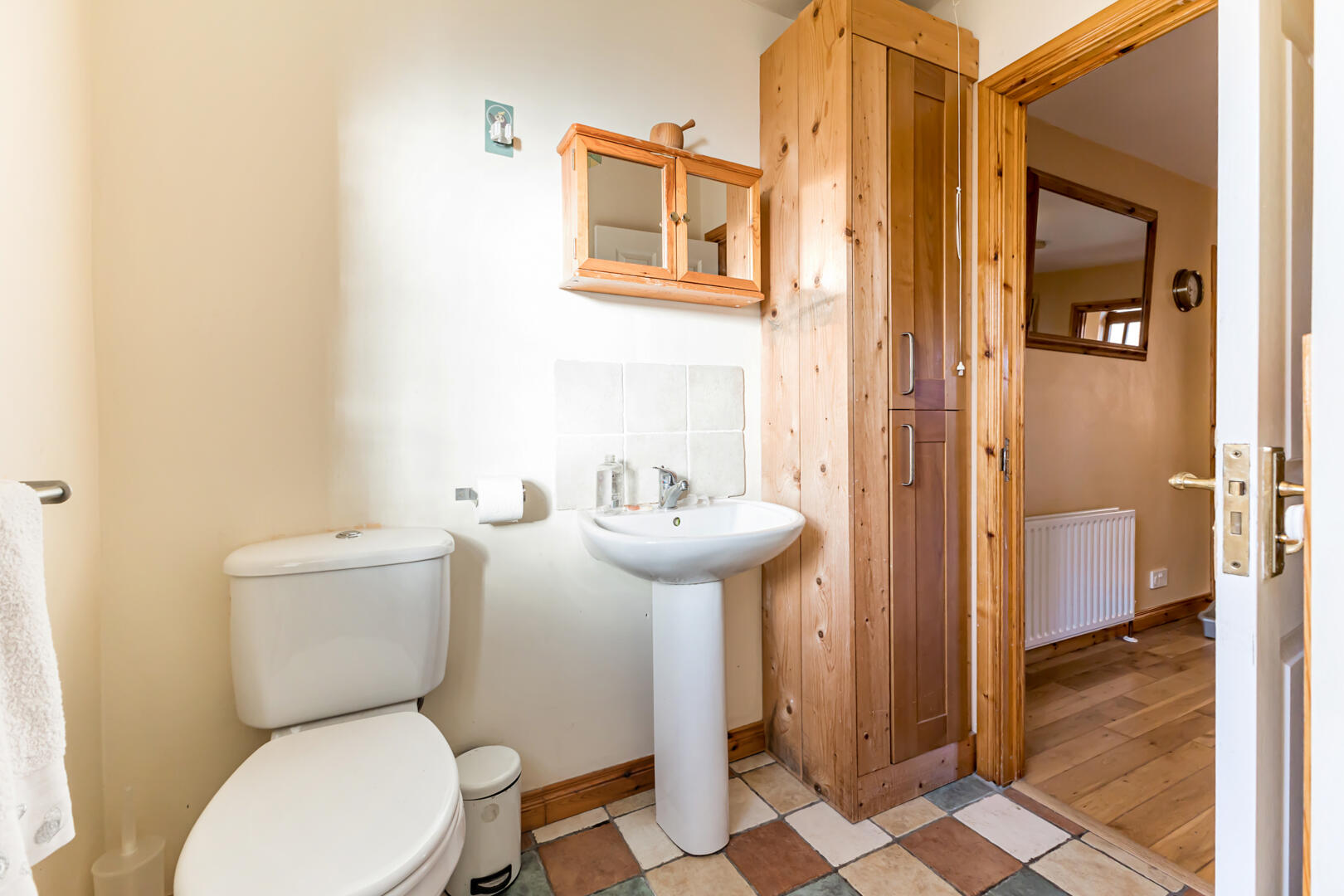 Utility/Wc - (2.01m x 2.72m) - Outlook to rear, ceramic tiled floor, low flush WC, pedestal sink with chrome mixer tap, tiled splashback, extractor fan, plumbed for washer / dryer, under stair storage
