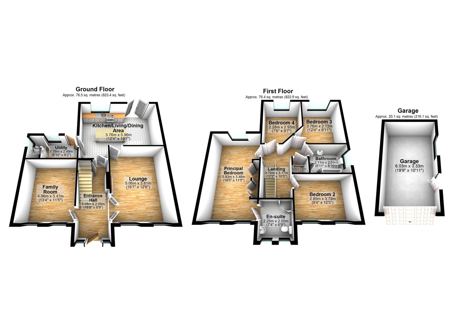 The heart of the home is the bright open - plan bespoke kitchen and dining area, thoughtfully designed with a centre island and excellent storage, perfect for both everyday living and entertaining. A separate utility room and ground floor WC complete the ground floor layout.