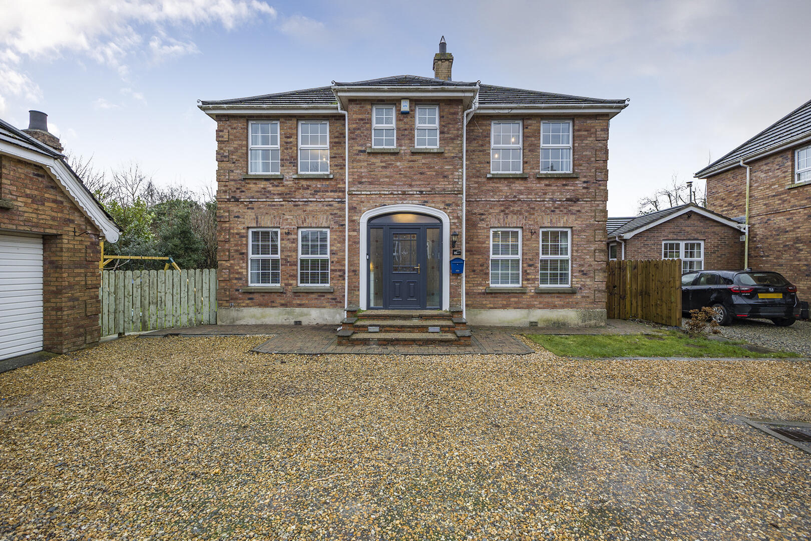 The property is approached via a pebbled a driveway providing ample off streetcar parking and access to a detached garage.