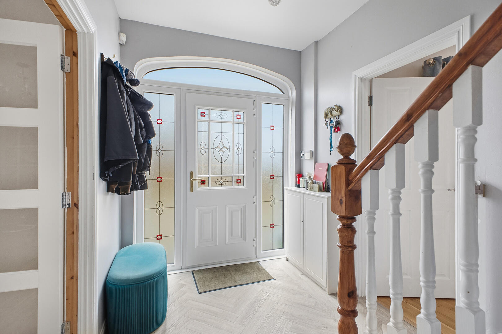 Entrance Hall - 5.08m x 2.06m (16'8" x 6'9") - Laminate wood flooring, under stair storage / electric controls