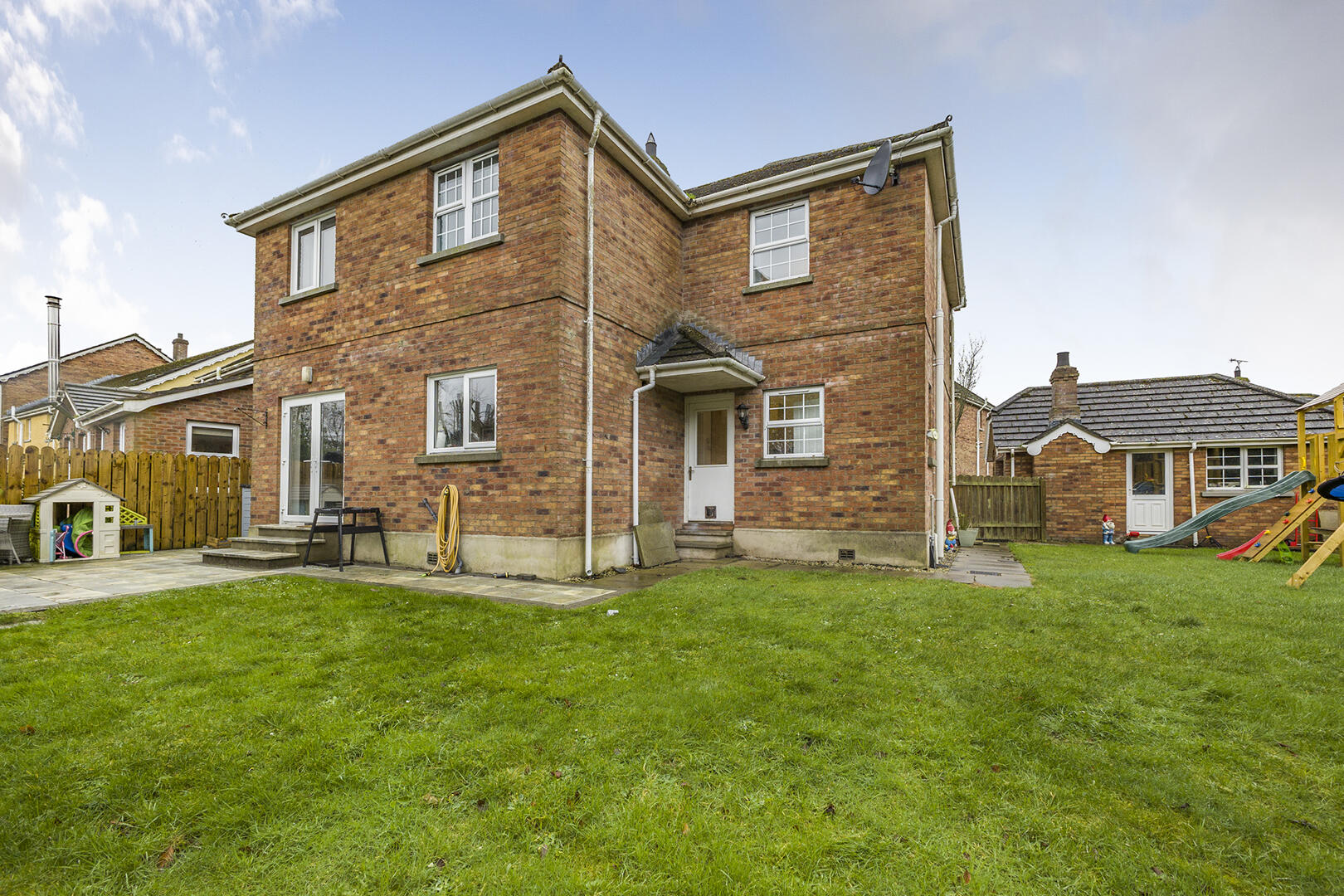 Fully Enclosed Rear Garden Laid in Lawn with Paved Patio Areas