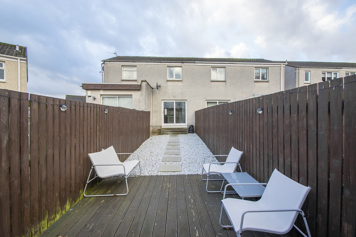 The property further benefits from a slabbed and chipped driveway providing off-street parking to the front. Fully enclosed hard landscaped garden to the rear with chipped, paved, and decked area and open outlooks. Double glazing. Gas central heating.
