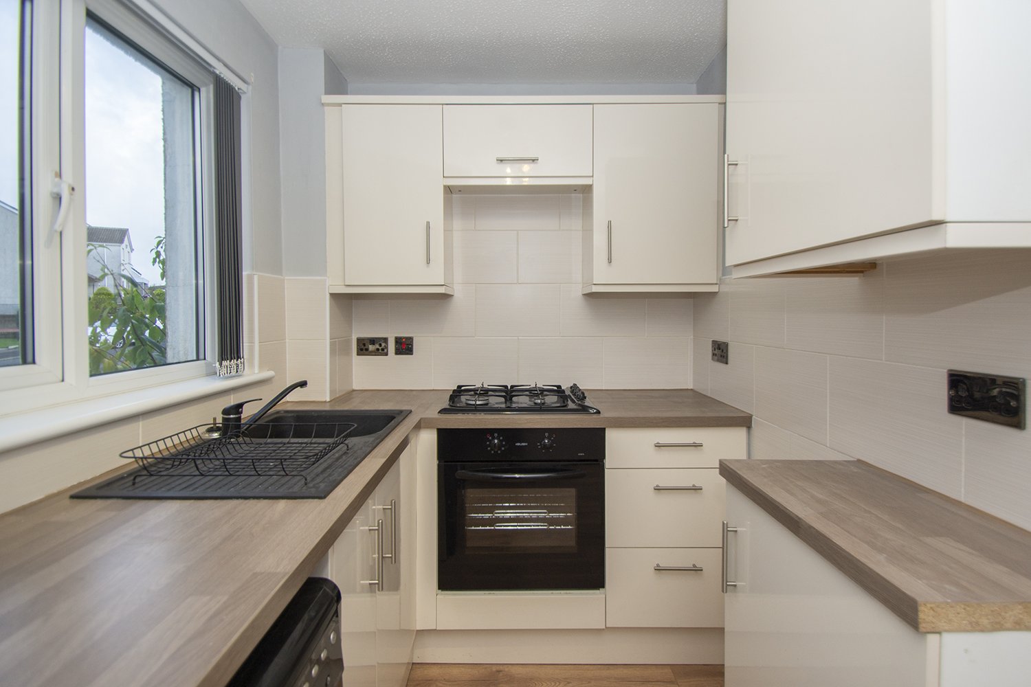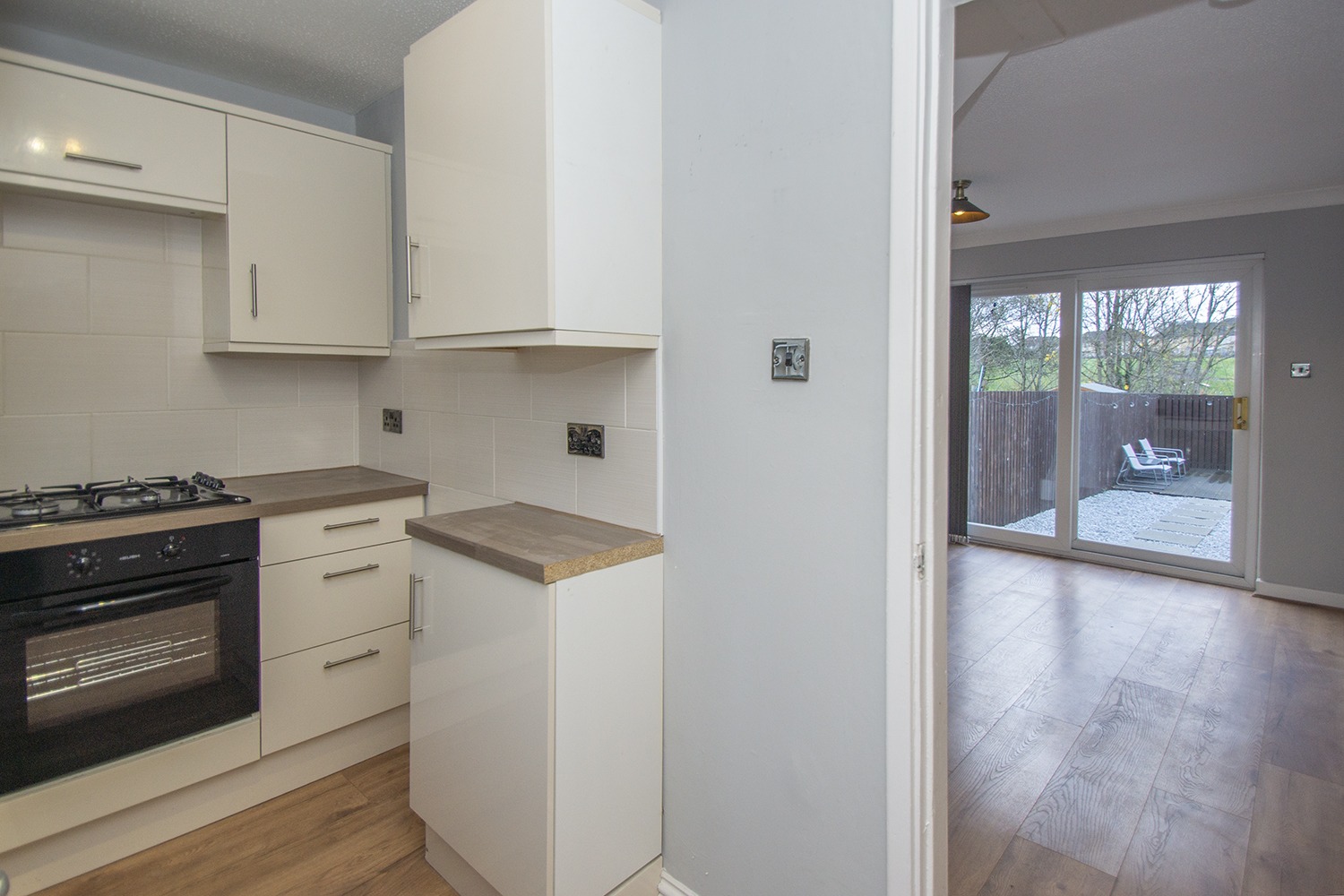 The accommodation is presented in walk-in condition throughout and comprises welcoming entrance hallway, rear facing lounge with patio doors which open to the rear garden and allow an abundance of natural light to flow through. Front facing contemporary fitted kitchen which houses an ample range of base and wall units with complementary worktops and tiled splash-back areas, integrated gas hob, electric oven and extractor hood. Well-proportioned double bedroom. Modern three-piece bathroom suite comprising wc, vanity unit housing the wash hand basin and bath with overhead shower.