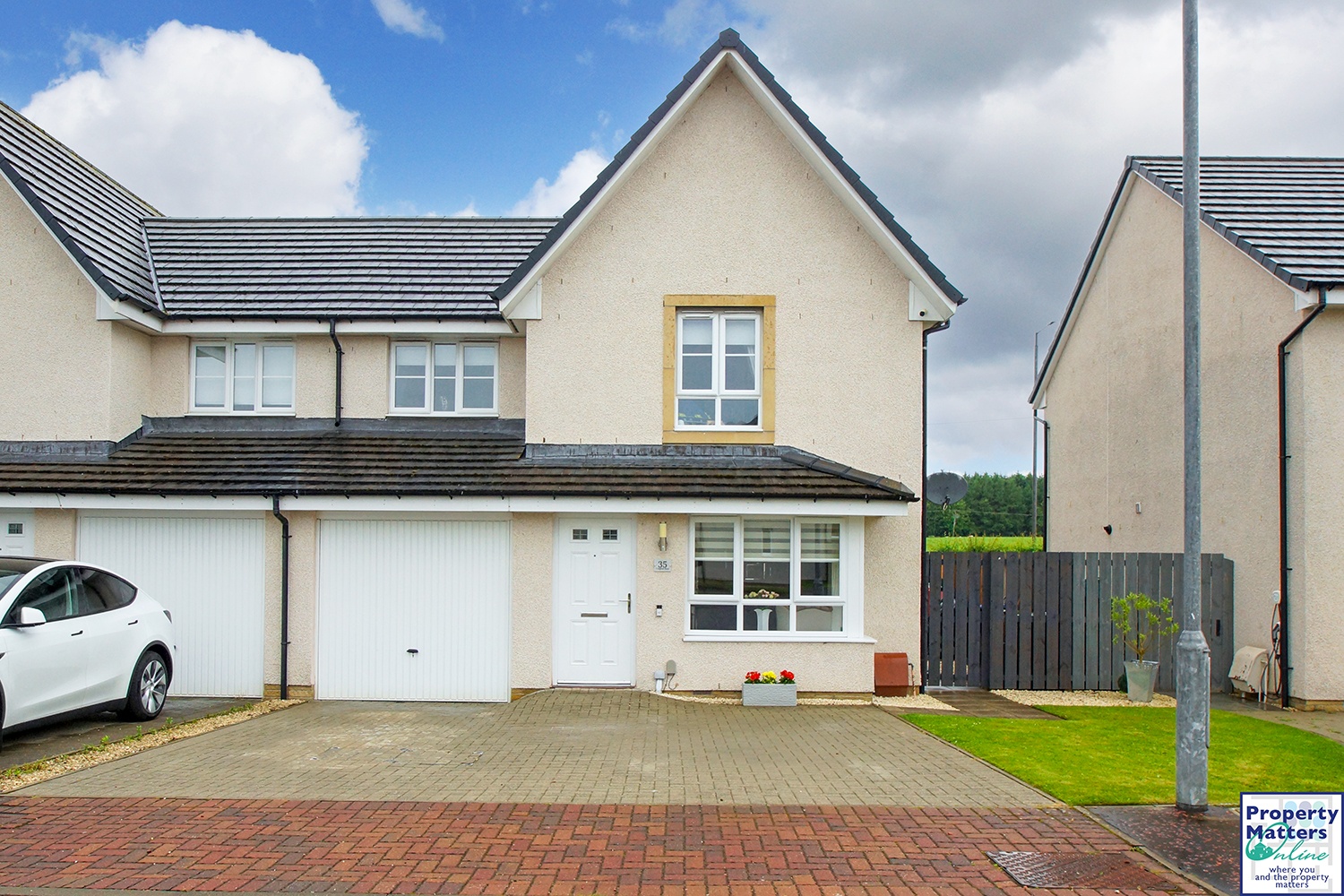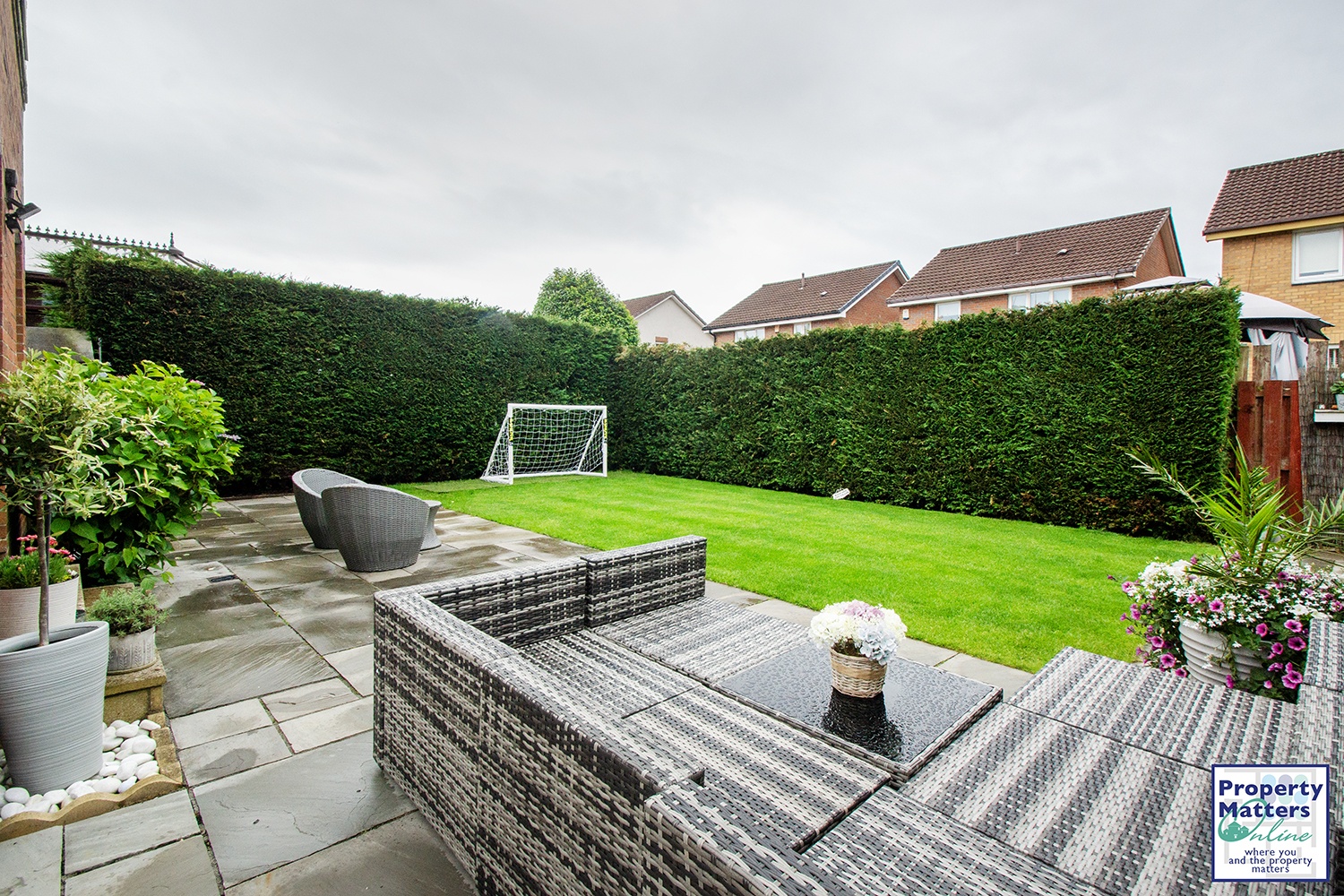 Externally, the property boasts a private driveway with electric vehicle charging point and a neatly maintained front garden laid to lawn. The enclosed rear garden also features a lawned area and a paved patio – ideal for outdoor dining. A side gate provides convenient access to the rear.