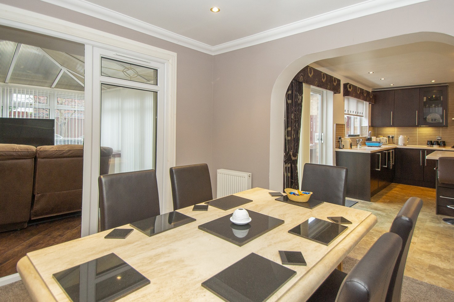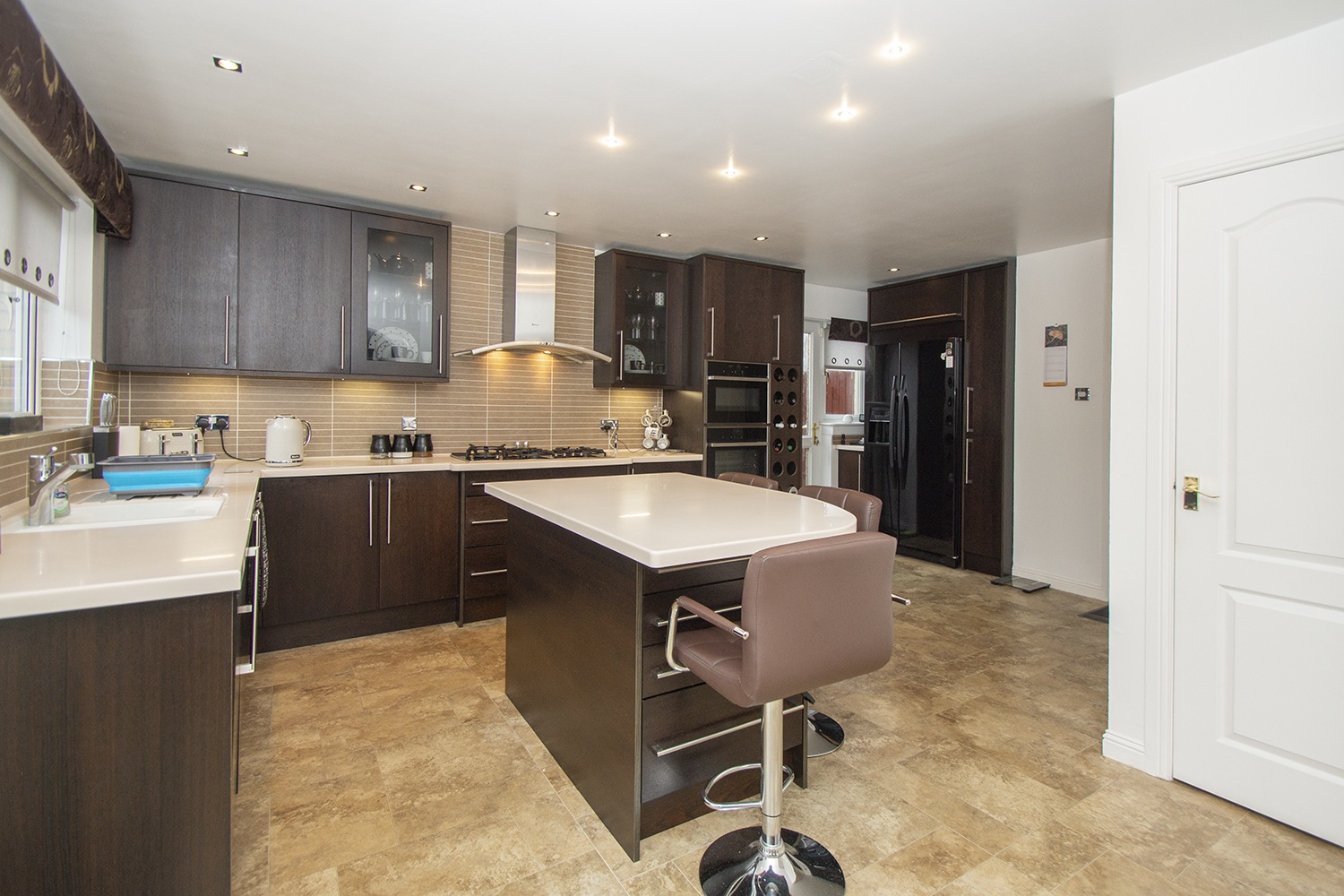 This stunning family home has been upgraded to an extremely high standard with quality fixtures and fittings throughout. The accommodation is formed over two levels with the lower level comprising welcoming entrance hallway, front facing lounge, generous sized kitchen/dining area housing ample range of base and wall units with complementary worktops and tiled splash back area and a range of integrated appliances, French doors leading to a bright and airy conservatory which gives access to the rear garden. The lower level also benefits from a downstairs w.c comprising of w.c and wash hand basin, a good sized family room/bedroom. The upper level accommodation houses the master bedroom with double fitted wardrobes and contemporary three-piece ensuite. Bedroom 2 and bedroom 3 are both generous sized bedrooms with bedroom 2 comprising of fitted wardrobes and both comprising of Jack ‘n’ Jill ensuite. Another fourth good sized bedroom. Three-piece family bathroom comprising w.c, wash hand basin and bath.