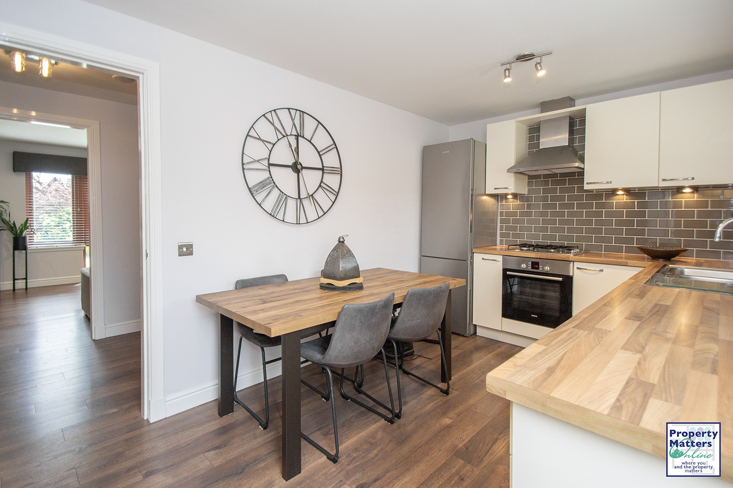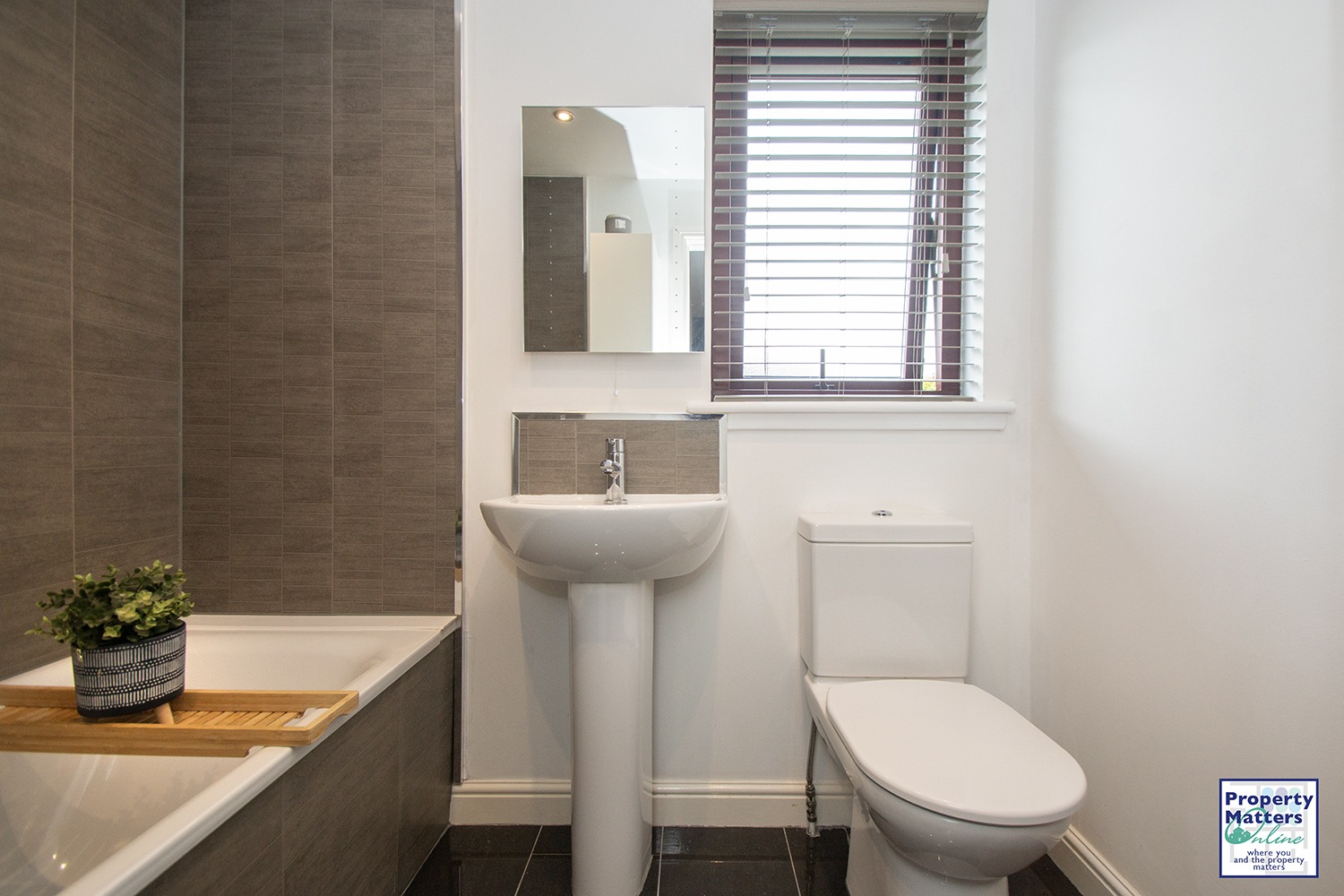 This spacious accommodation is formed over two levels with the lower level comprising welcoming entrance hallway, well-proportioned lounge with front facing window formation which allow an abundance of natural light to flow through. Fantastic dining kitchen to the rear which houses an ample range of base and wall units with complementary worktops, splash-back areas and large storage cupboard. Integrated appliances including dishwasher, washing machine, oven and gas hob. Modern fully tiled downstairs W.C with side window. The upper-level accommodation houses the main bedroom with double fitted wardrobes and contemporary ensuite with thermostatic shower. A further two bedrooms both with storage. Three-piece family bathroom comprising wc, wash hand basin and bath with vanity unit, tiled flooring and wet wall splashback areas.