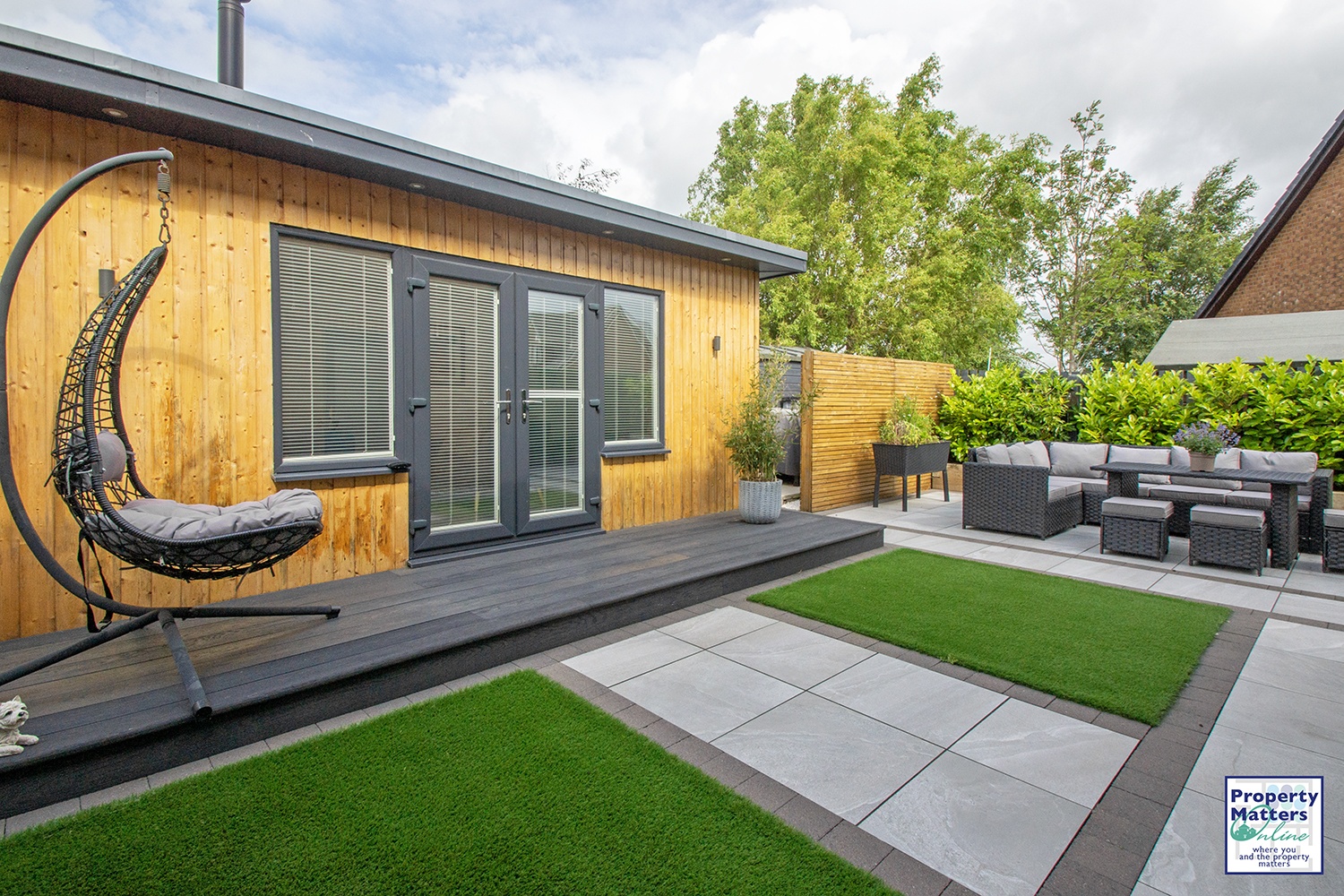 The property has a summerhouse in the rear garden. This versatile space is currently used as additional family room and has power installed. A quality addition which is sure to impress.