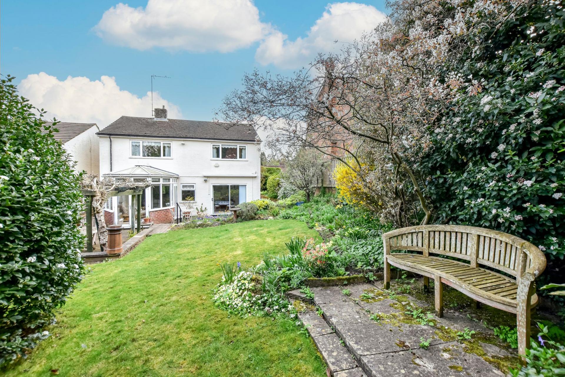 Externally, the property excels. The South-facing rear garden is particularly private and is made up of a number of separate seating areas, lawned spaces and mature borders. The main patio area is a lovely space to entertain, flowing straight out from the house, and boasts a wooden pergola that is encased with Wisteria. Side access leads to the front of the house, where there is a large front garden with spacious driveway for multiple vehicles and access to the integral garage.