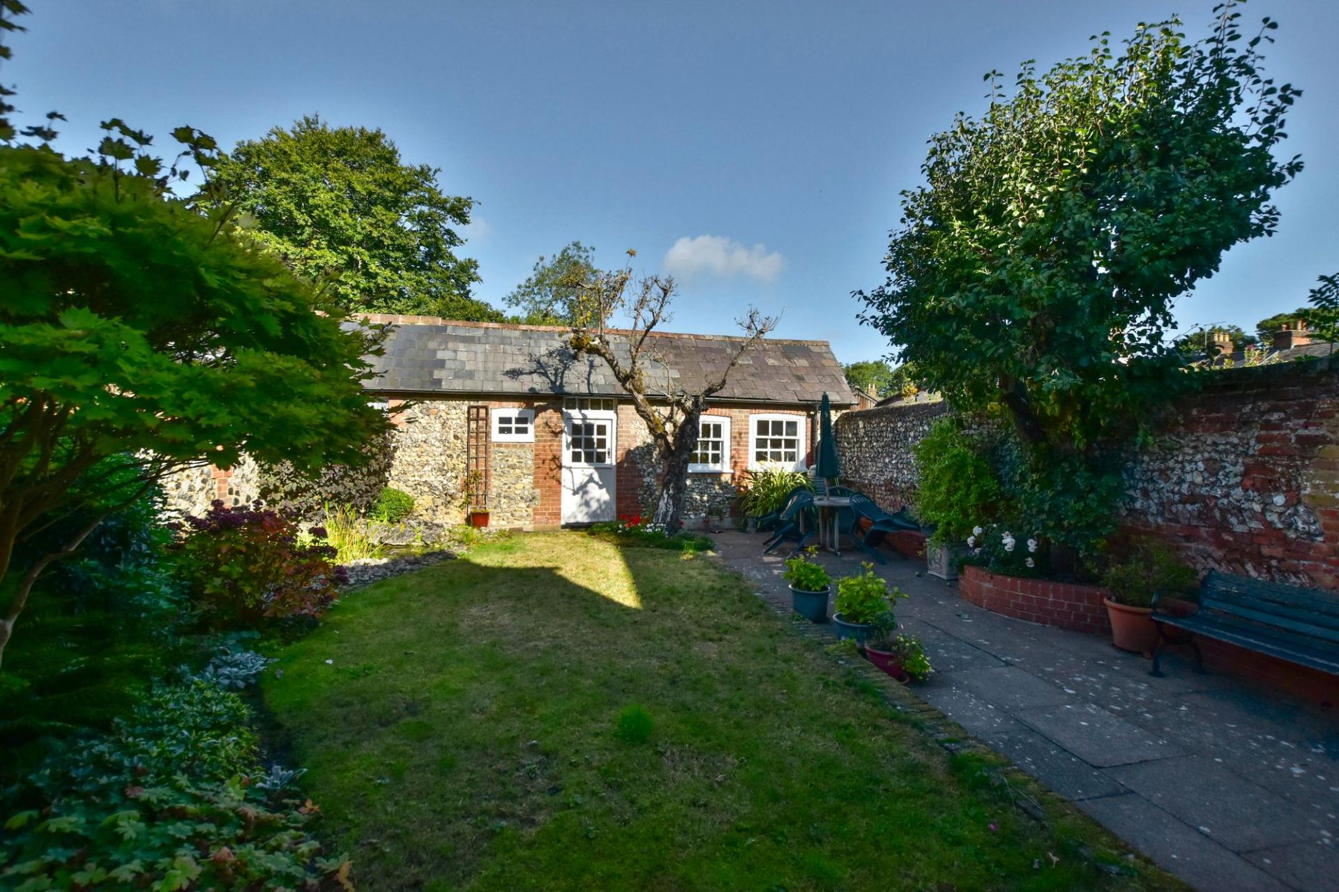 Externally, the rear garden is a lovely and private space flanked with brick and flint walls. There is also a brick built garden room, which is perfectly suited as home office, complete with its own W/C. Side access leads you to the front of the house where there is an attractive front garden, enclosed via a quaint picket fence, whilst also offering gated parking.