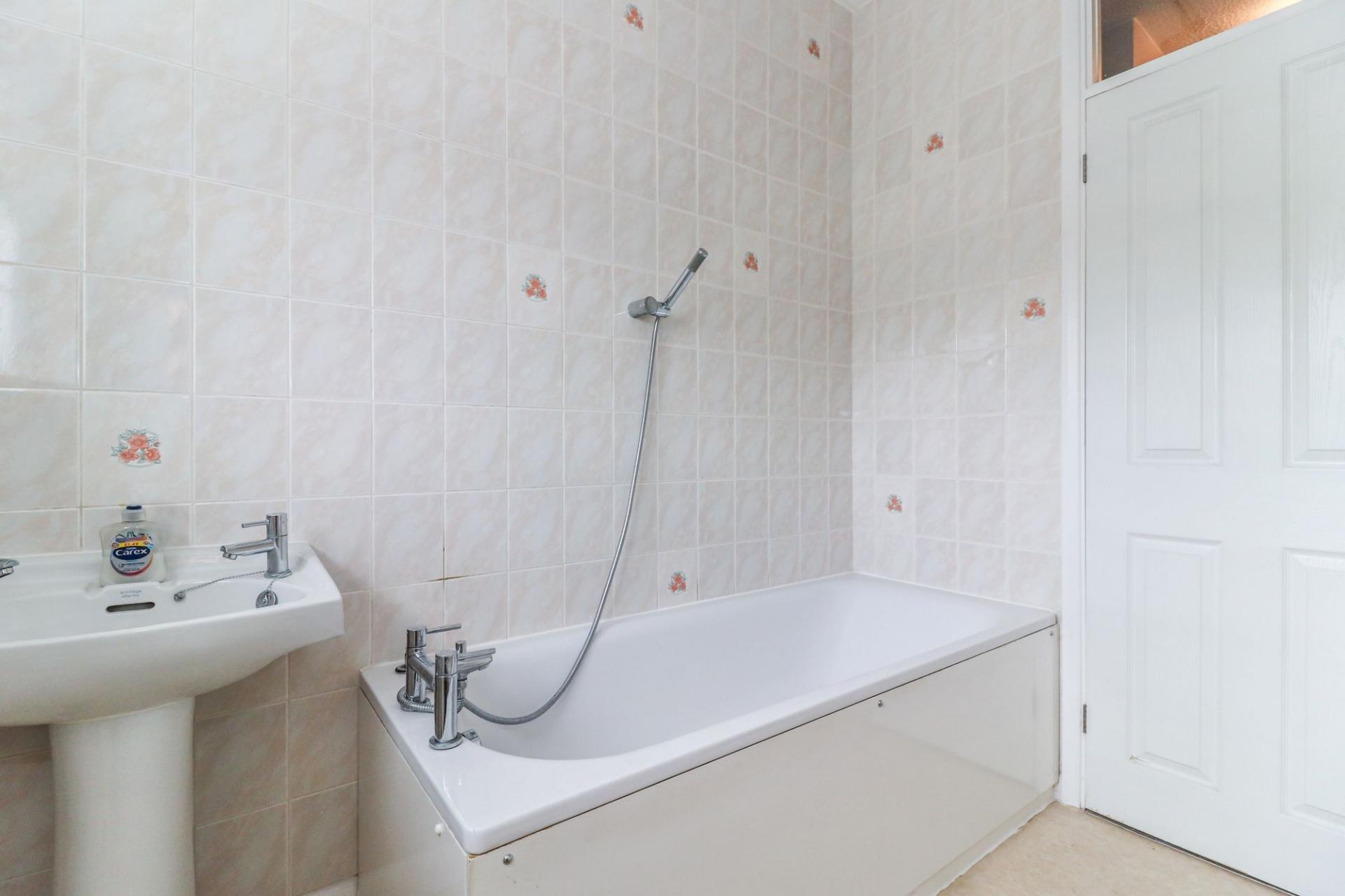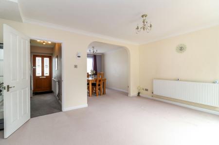 To the ground floor, there is a welcoming entrance hall with stairs leading to the first floor and a door leading in to the main living space. This spacious open-plan area offers separate living and dining areas with sliding patio doors flowing directly out to the garden and a door leading in to the kitchen. The kitchen itself in fitted in a classic shaker style, with plenty of worktop and cupboard space, as well as room for a range of appliances.